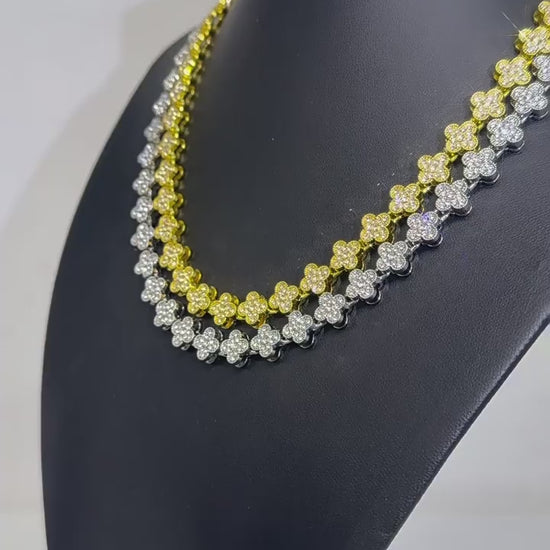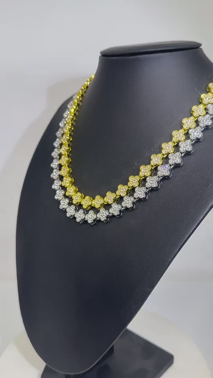 14k Layered Real Gold Plated icedout clover set necklace bracelet #159
