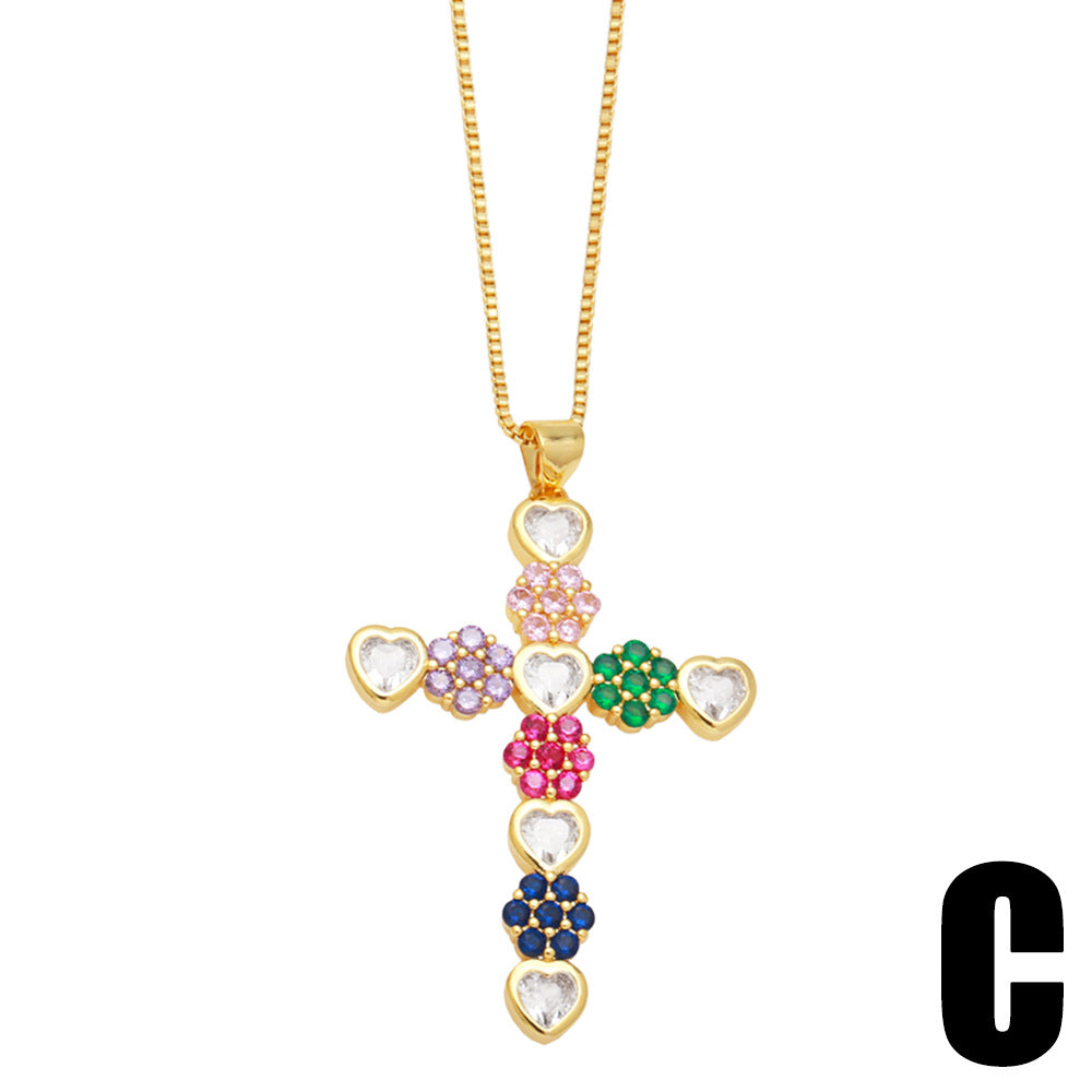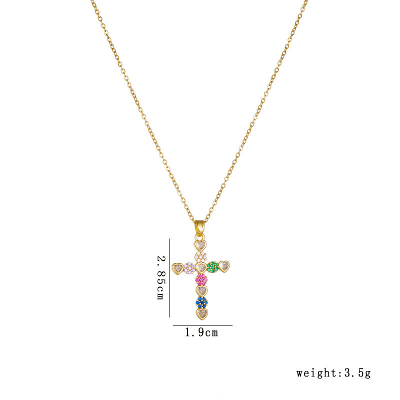 18k Layered real gold filled flowers colors stones cross pendant with chain #45