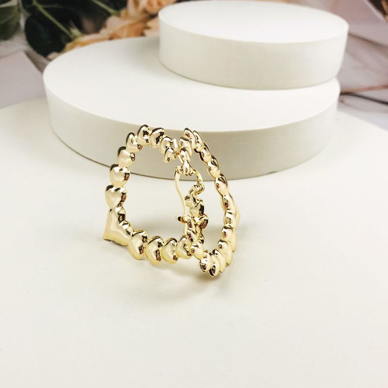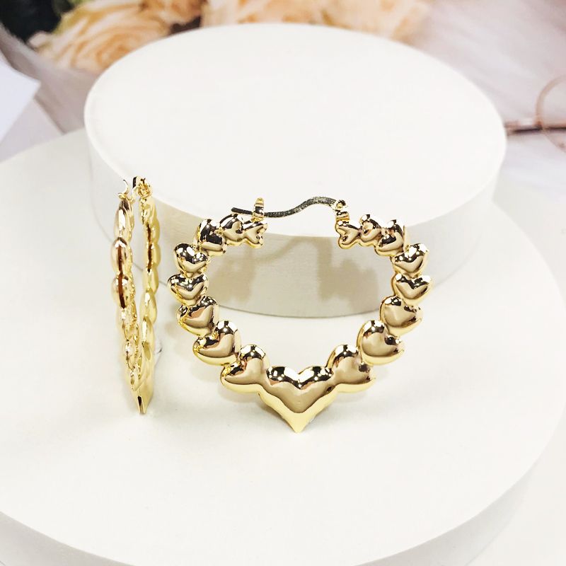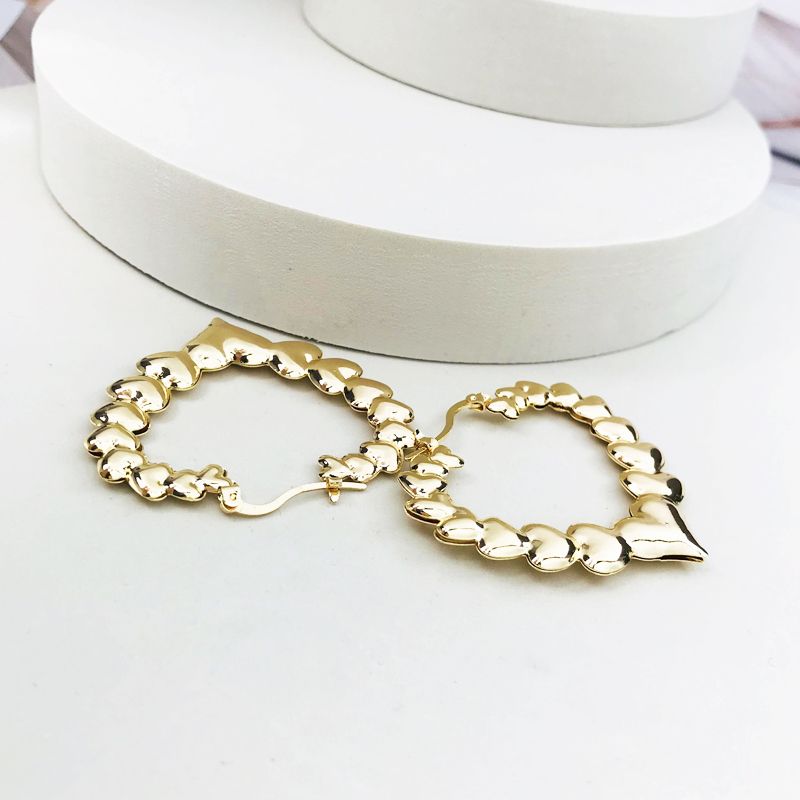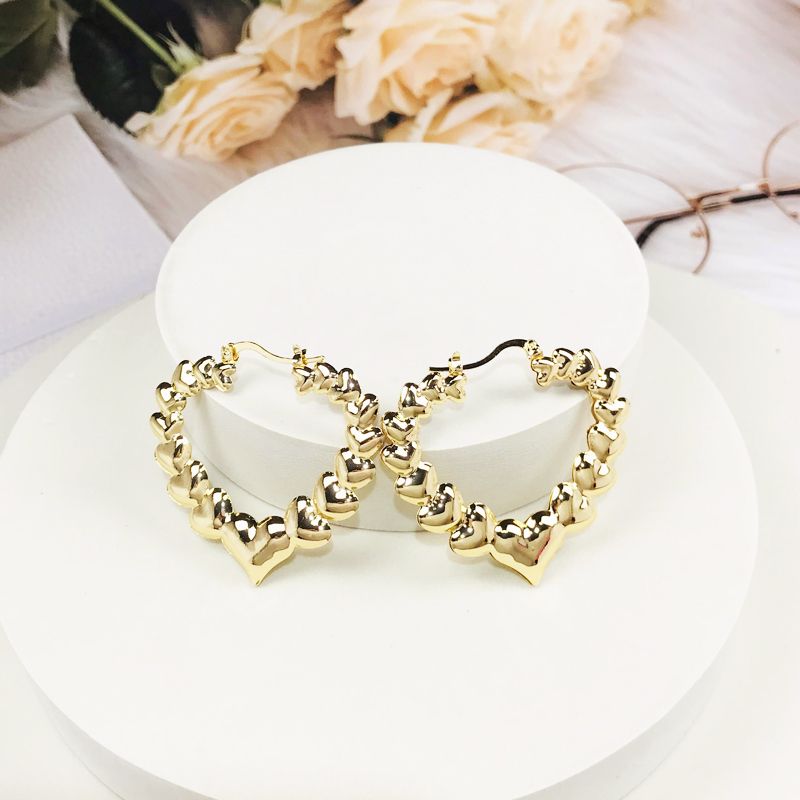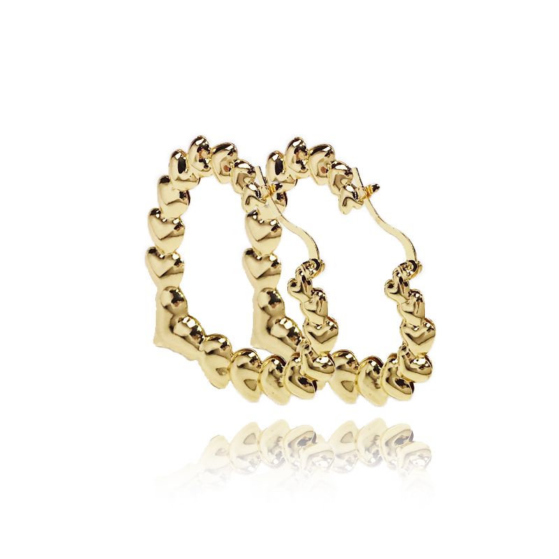18k Layered Real Gold Filled hearts bamboo hoop earrings #84