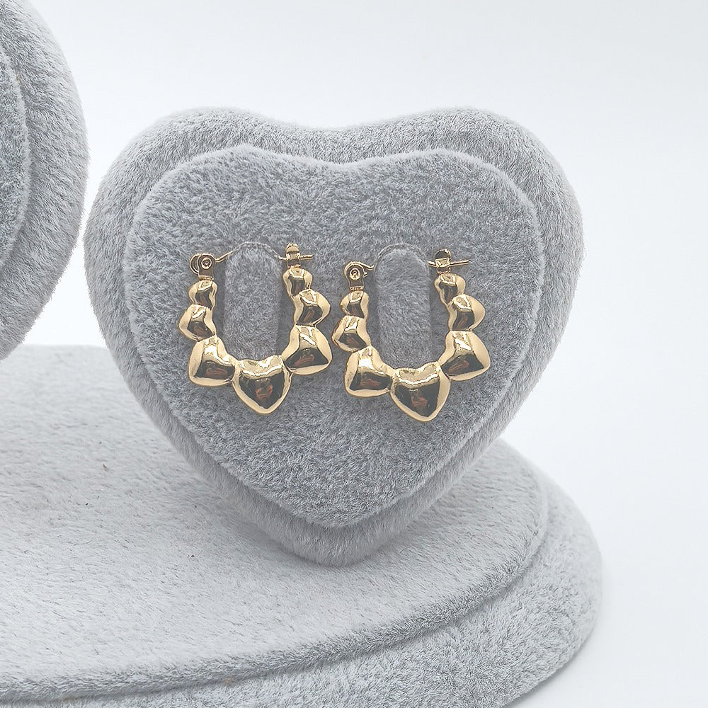 18k Layered Real Gold Filled hearts bamboo hoop earrings #89