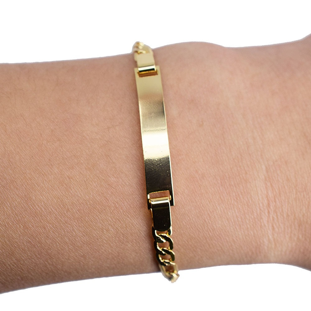 18k Layered Real Gold Filled id Figaro bracelet 7.5 inches #25