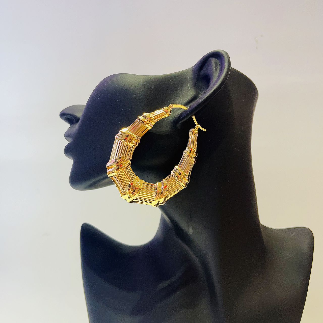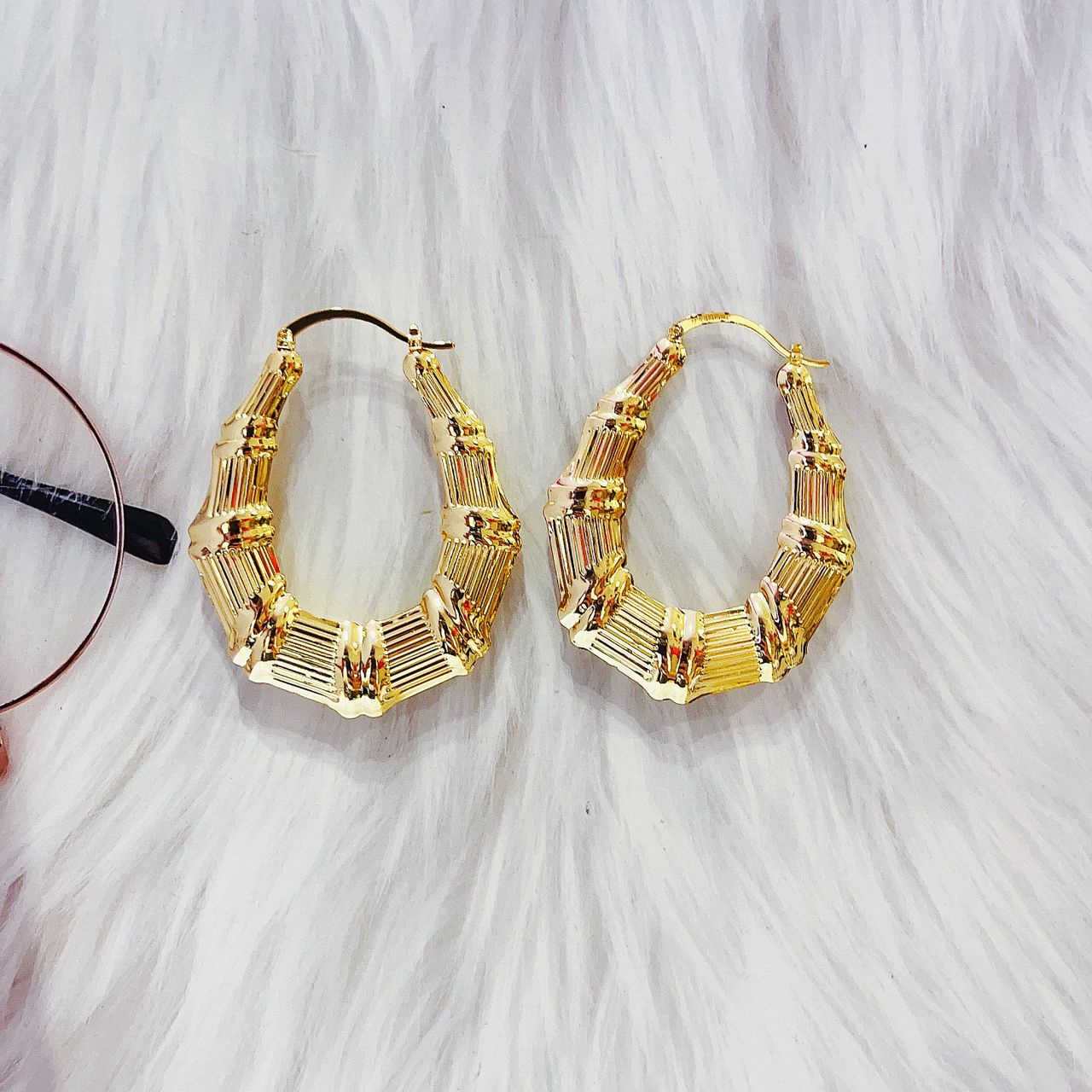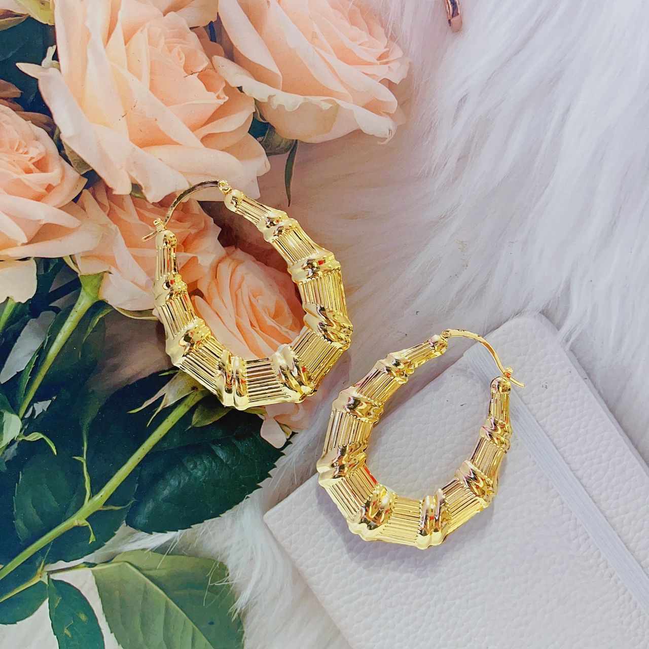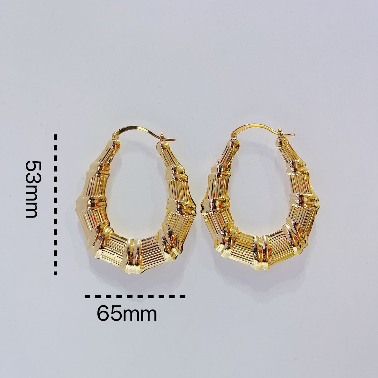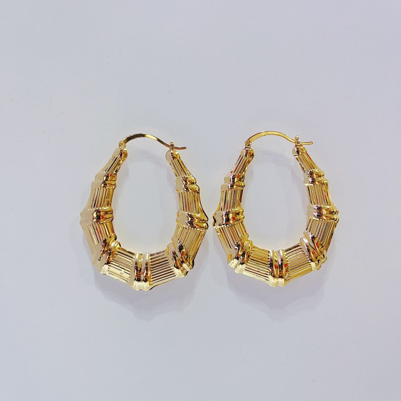 18k Layered Real Gold Filled oval bamboo hoop earrings #88