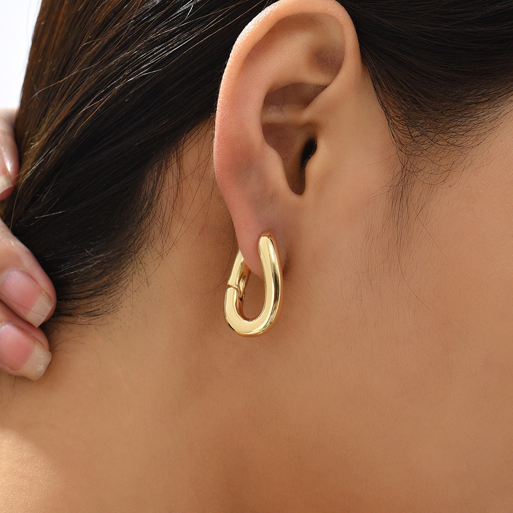 18k Layered Real Gold Filled oval shape hoop earrings #91