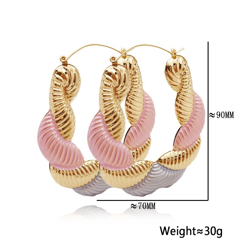 18k Layered Real Gold Filled oval tri colors bamboo hoop earrings #82