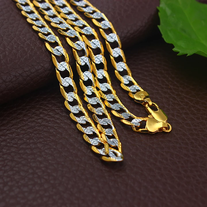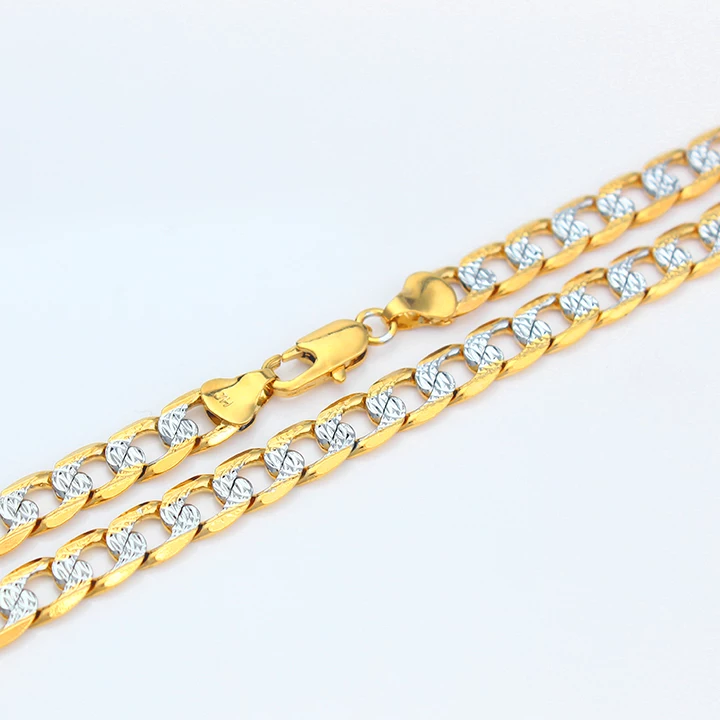 18k Layered Real Gold Filled pave two tones cuben link 24"