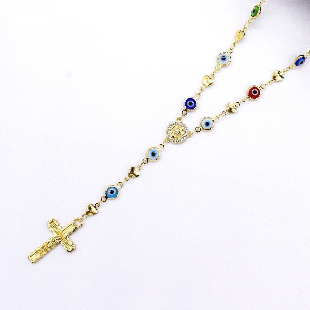 18k Layered real gold filled religious rosary necklace evil eyes #10