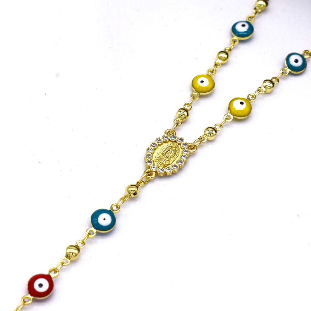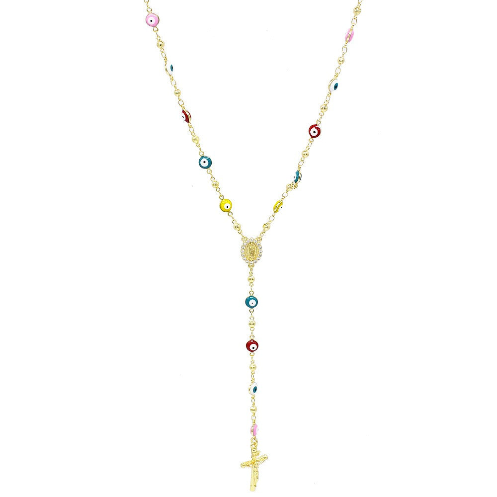 18k Layered real gold filled religious rosary necklace EVIL eyes #12