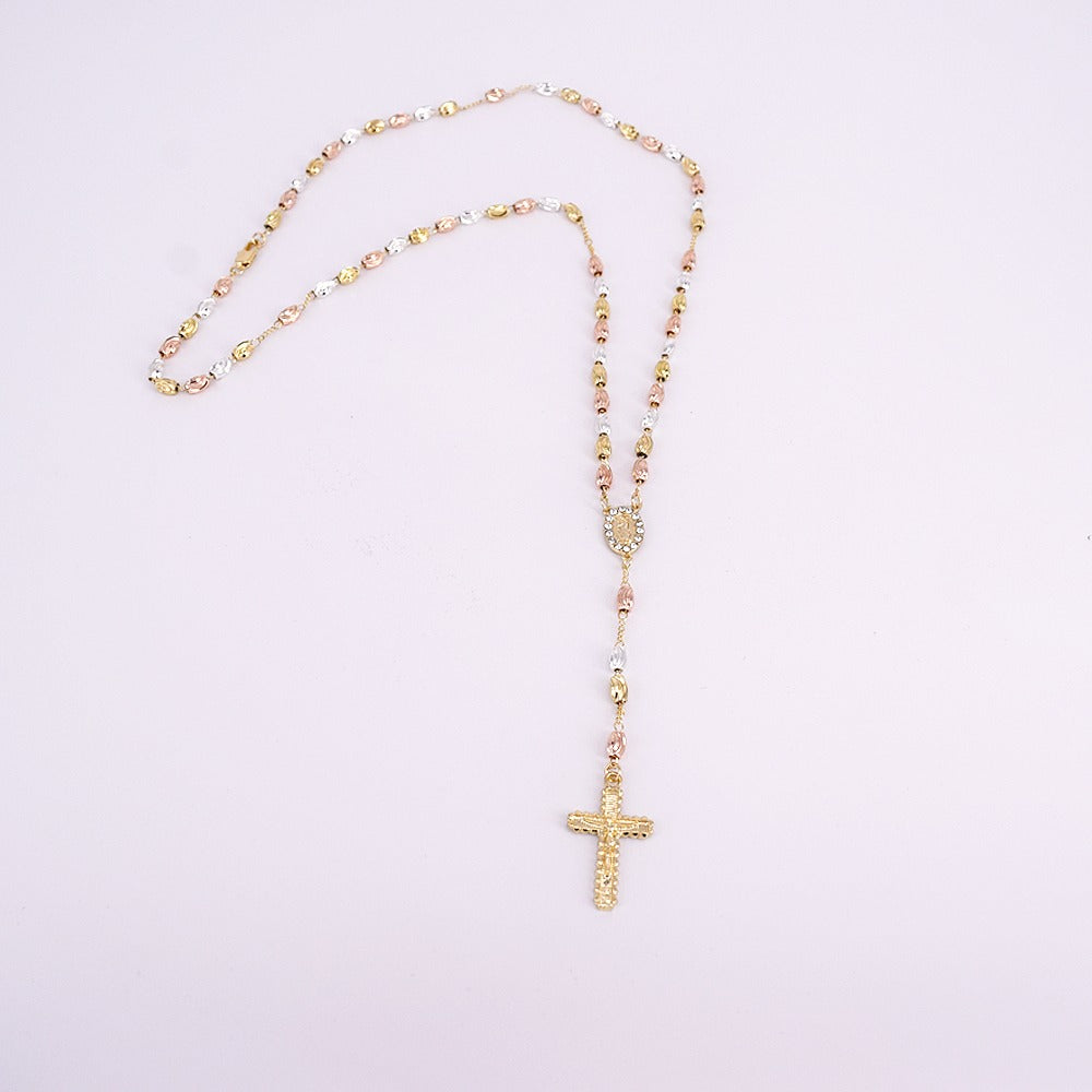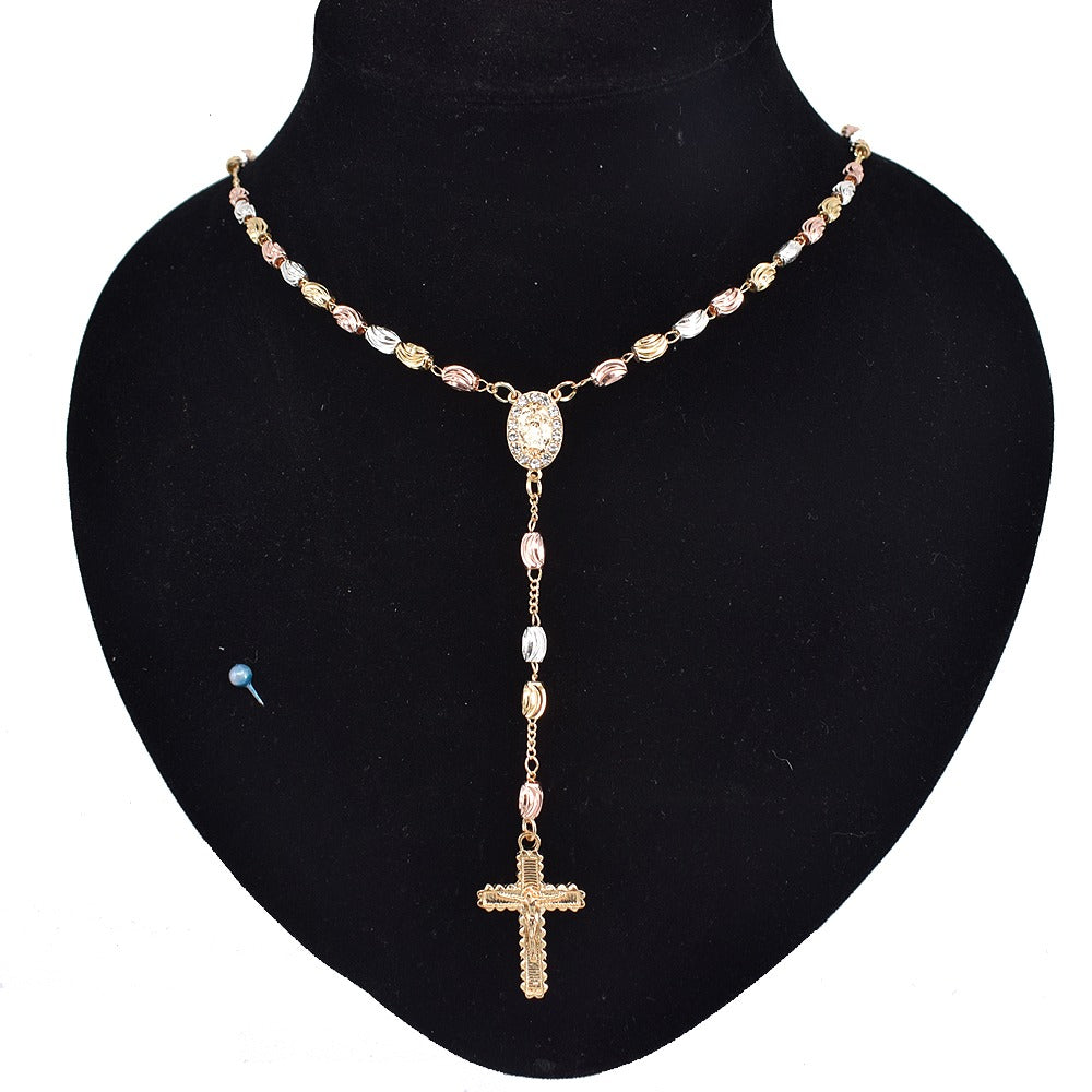 18k Layered real gold filled religious rosary necklace tri colors #4