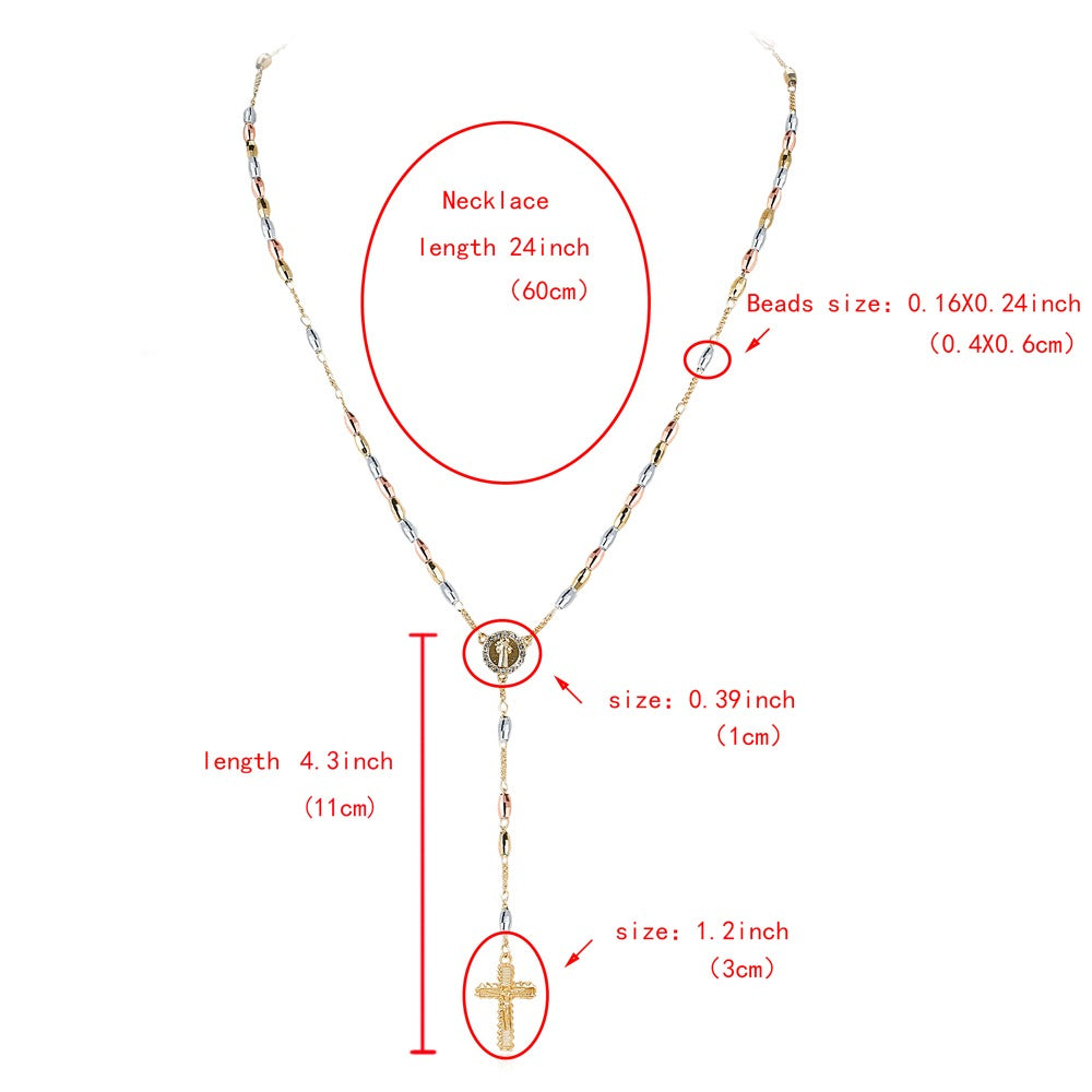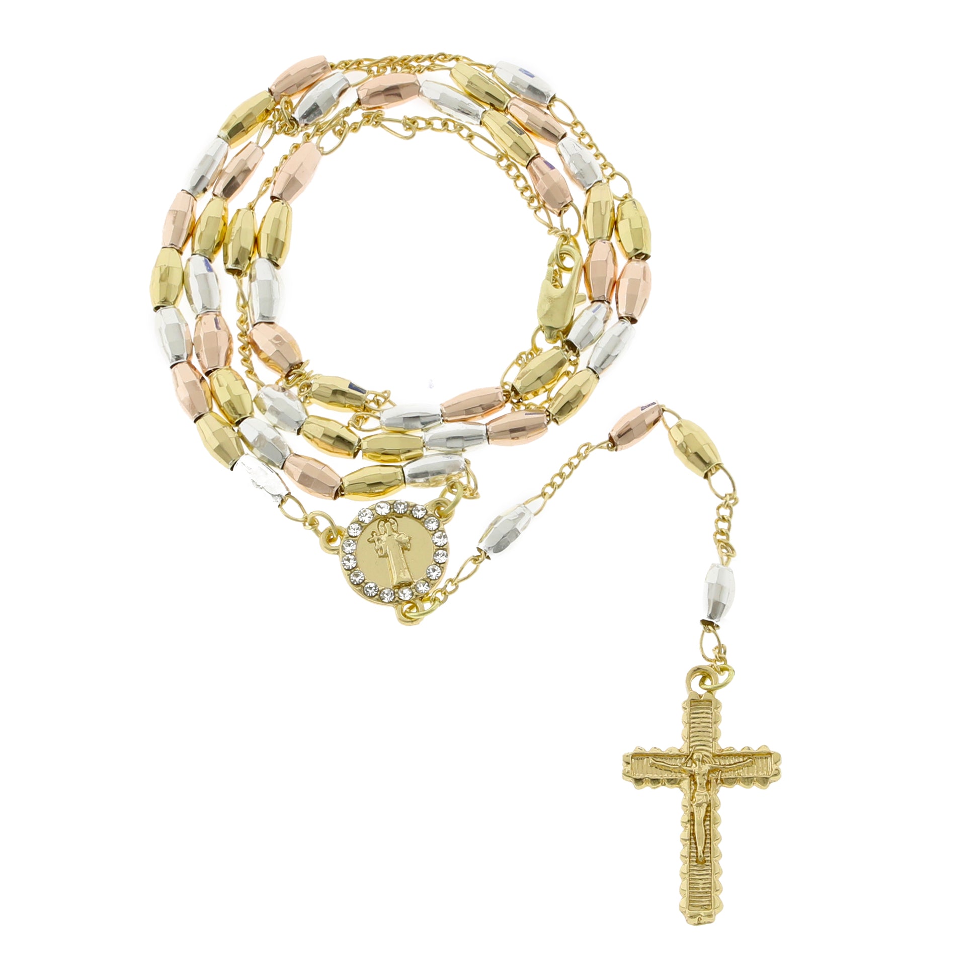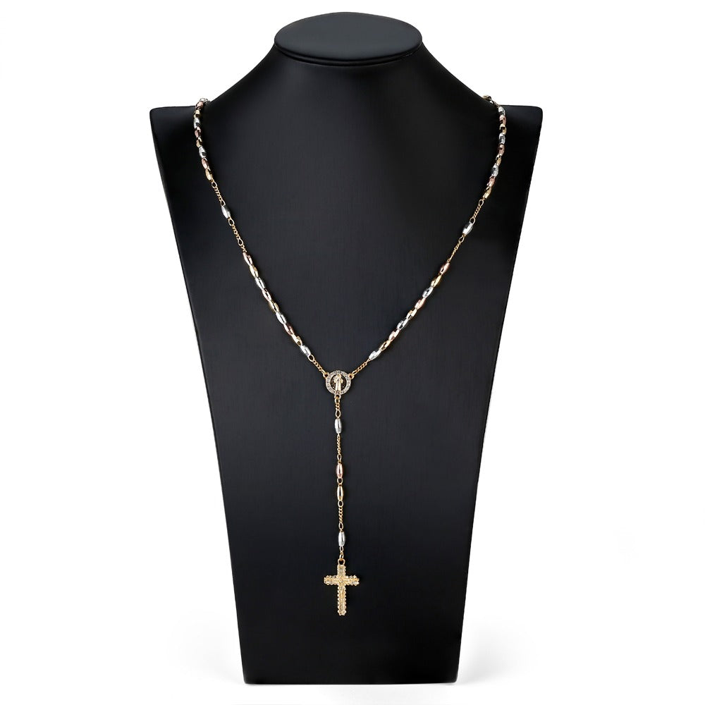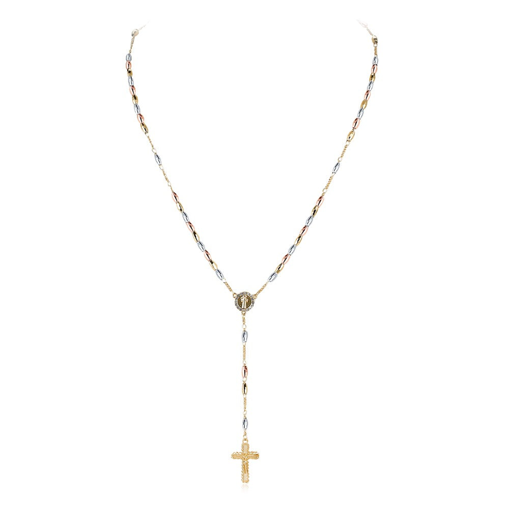 18k Layered real gold filled religious rosary necklace tri colors cross #5