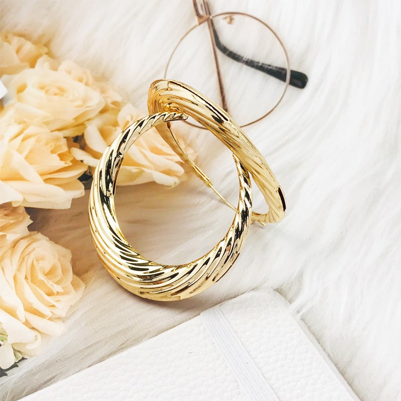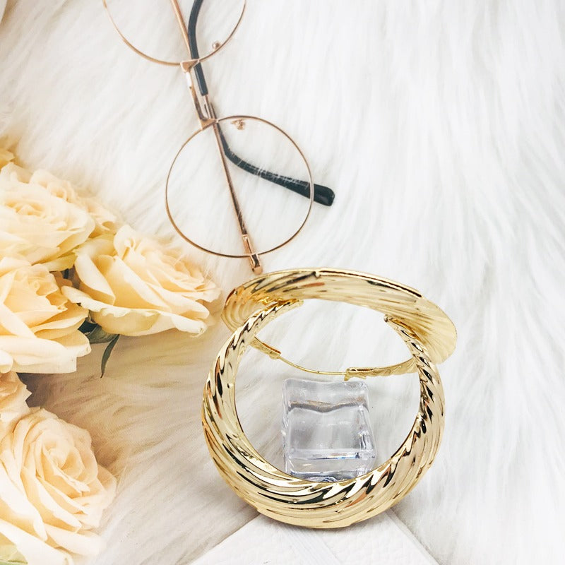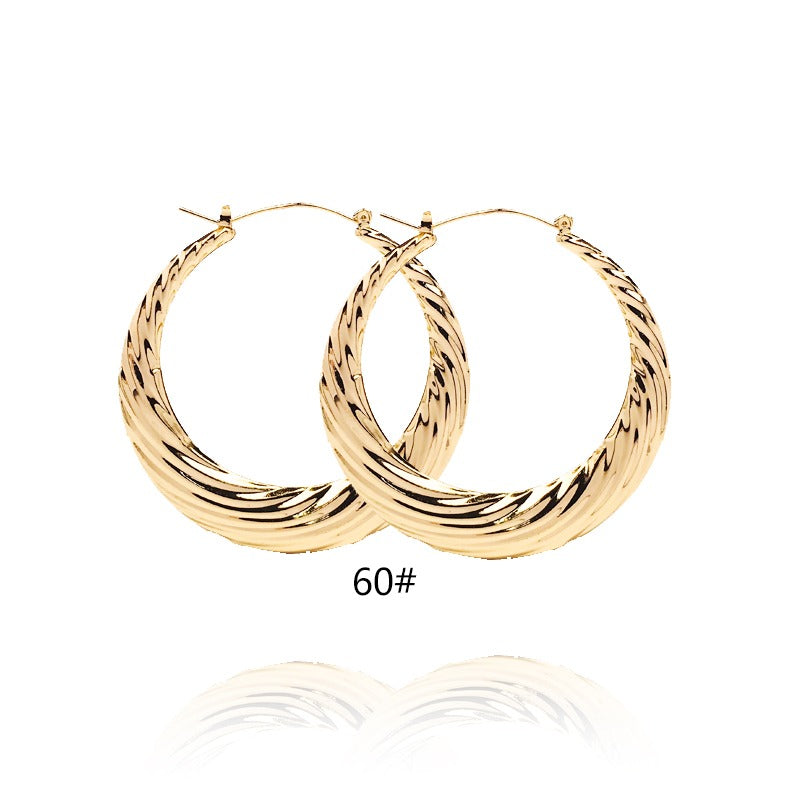 18k Layered Real Gold Filled round bamboo hoop earrings #38