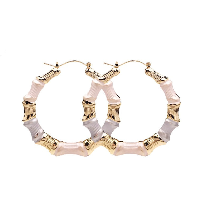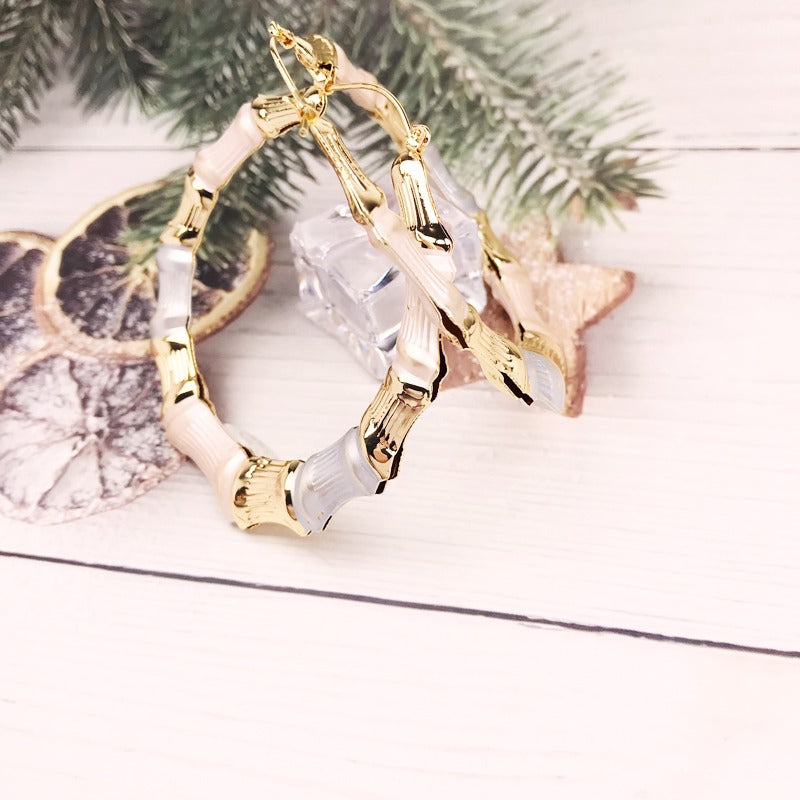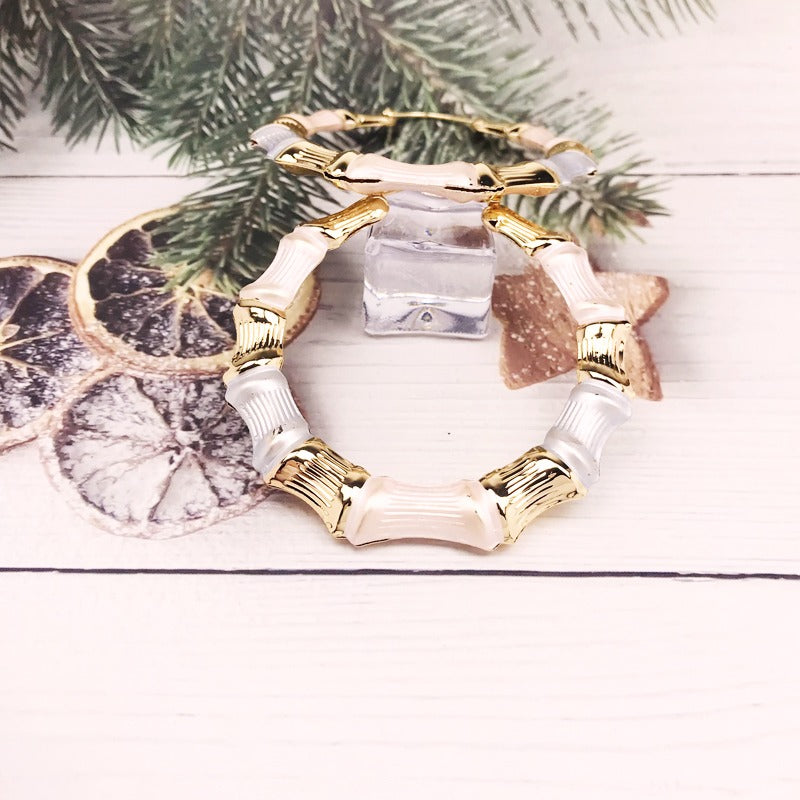18k Layered Real Gold Filled round bamboo hoop earrings tri colors #30