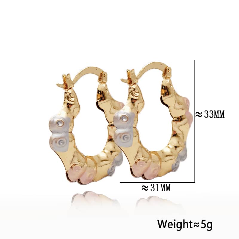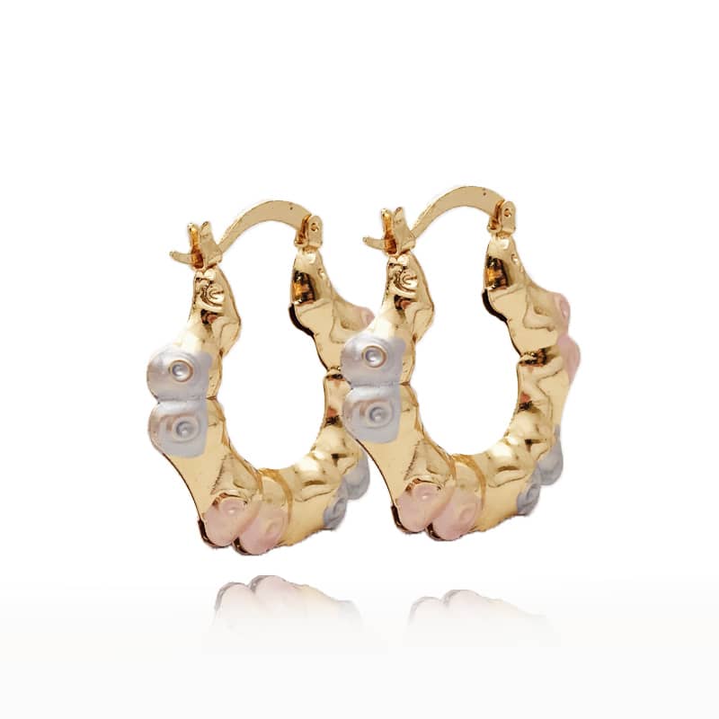18k Layered Real Gold Filled round bamboo hoop earrings tri colors #79