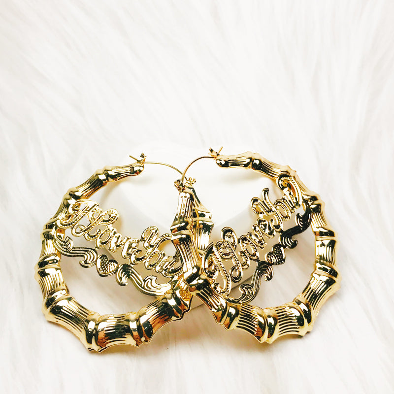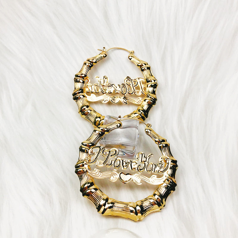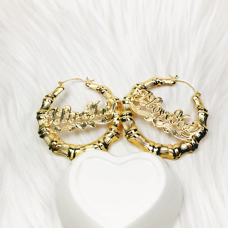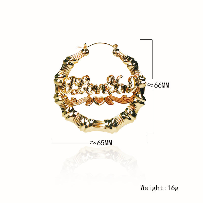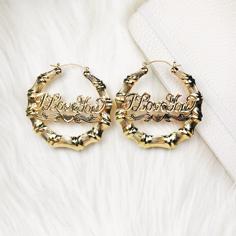 18k Layered Real Gold Filled round bamboo i love you hoop earrings #17