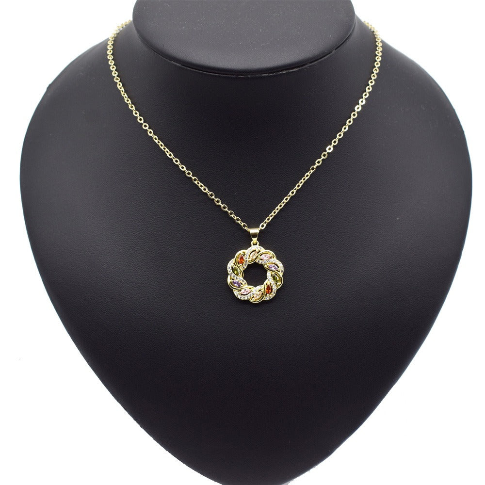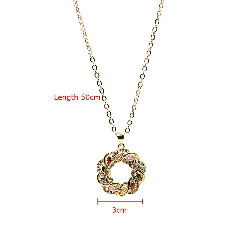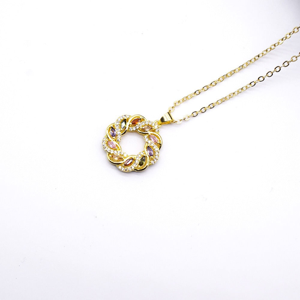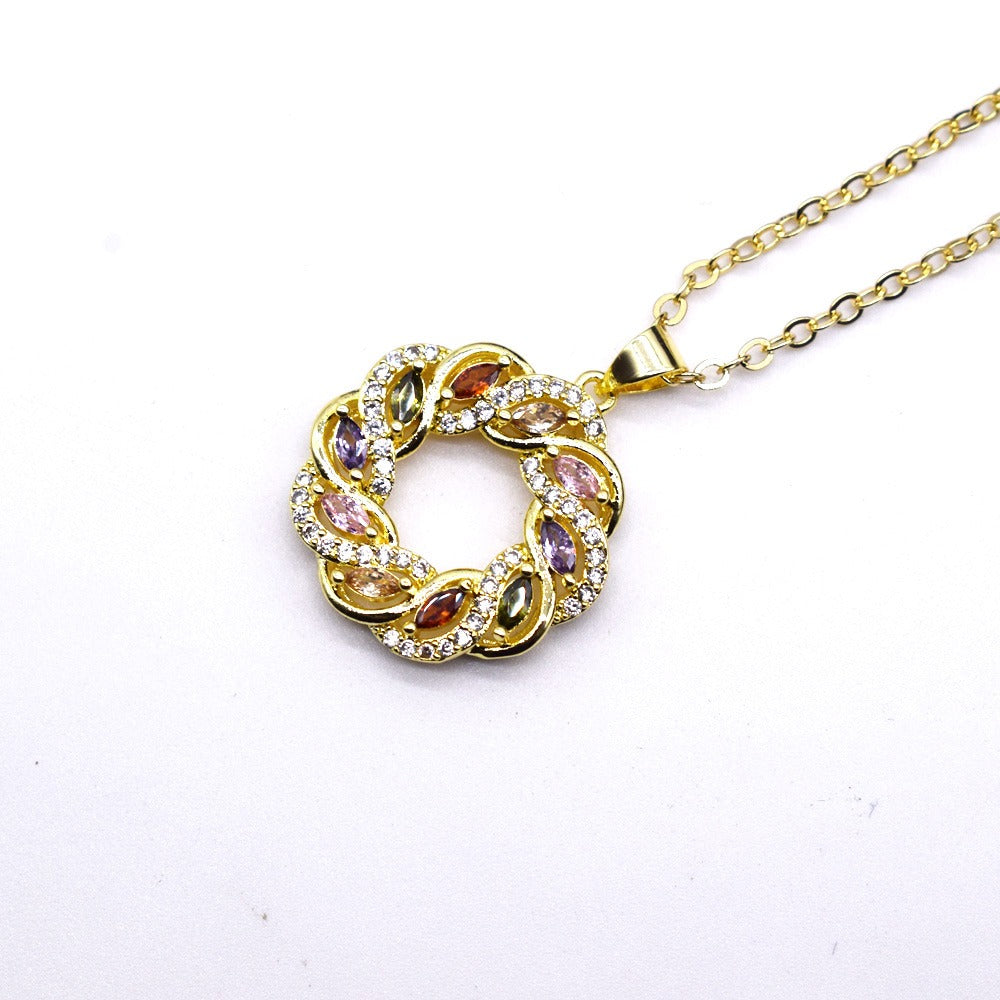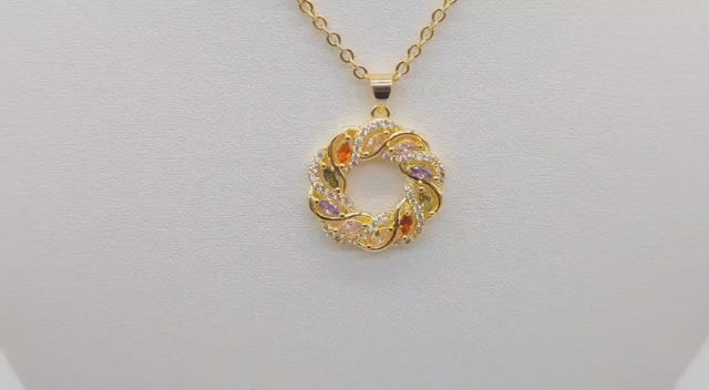 18k Layered Real Gold Filled round colors stones pendant charm with 18" chain necklace #35