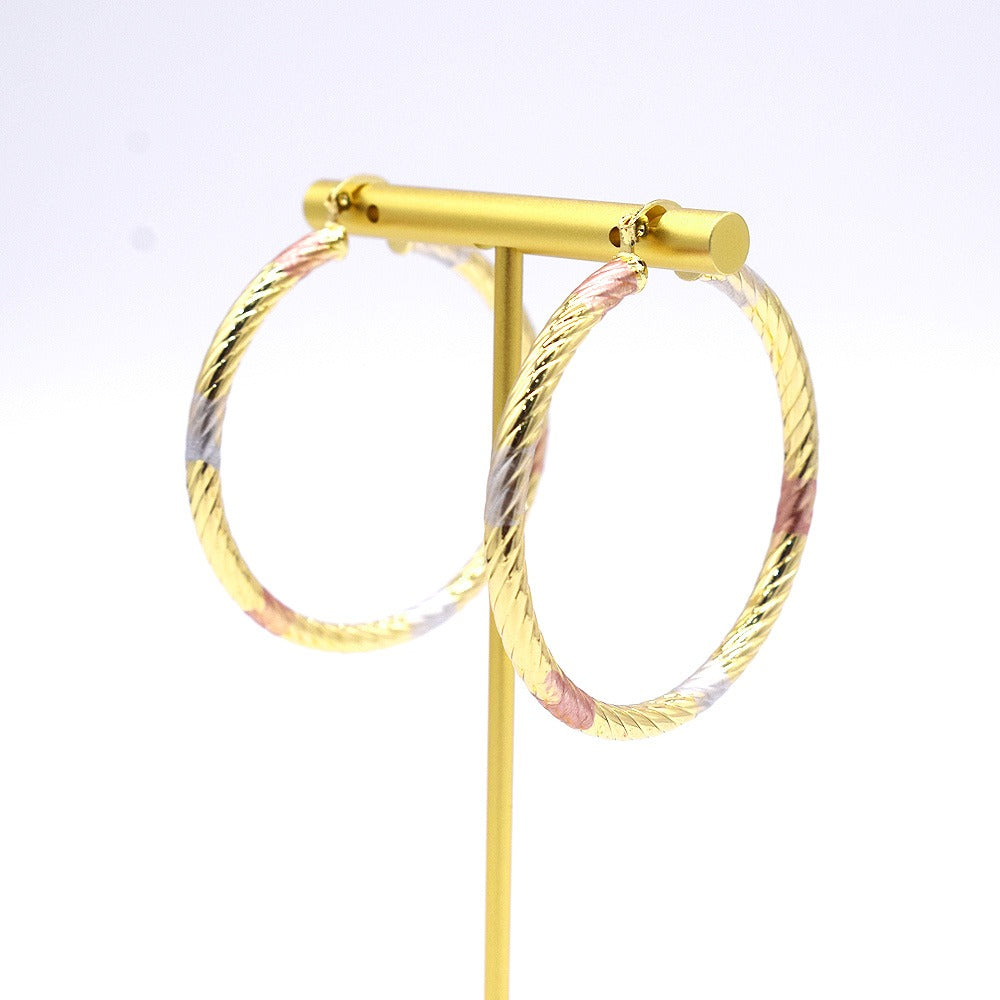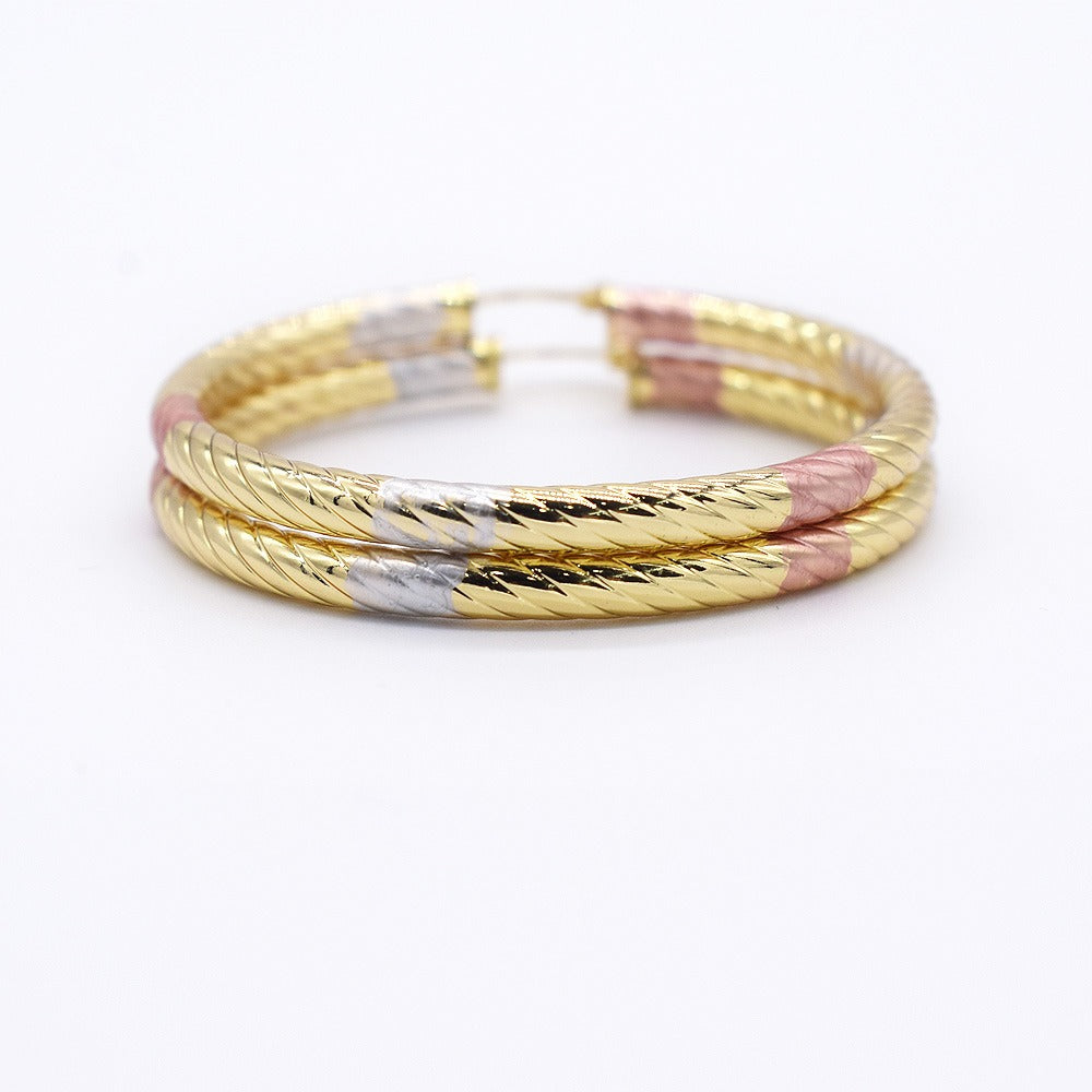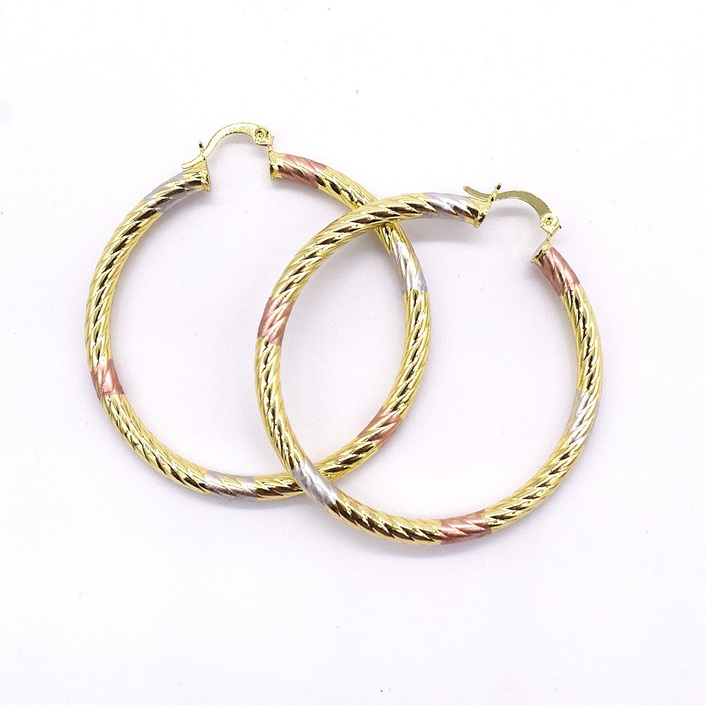 18k Layered real gold filled Round hoop earrings tri colors #25