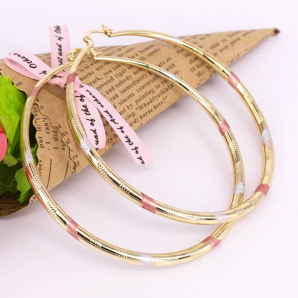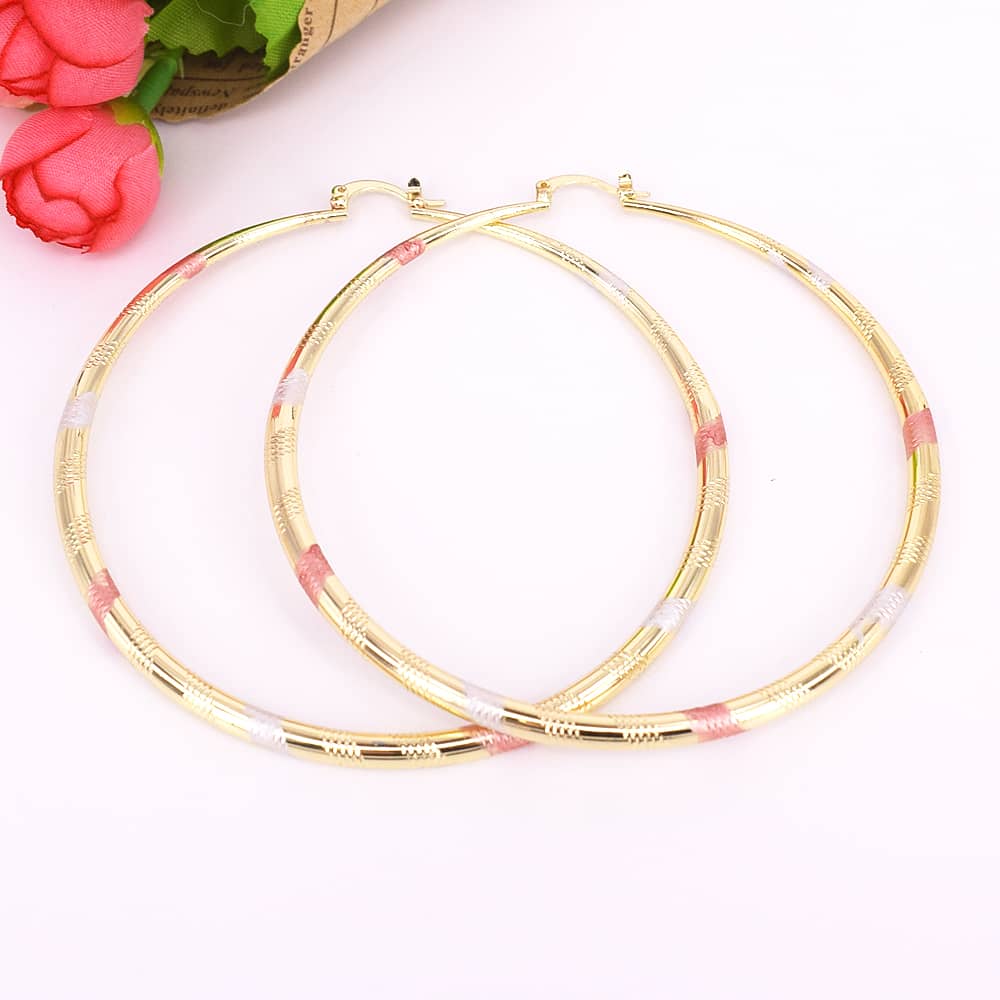 18k Layered real gold filled Round hoop earrings tri colors #26
