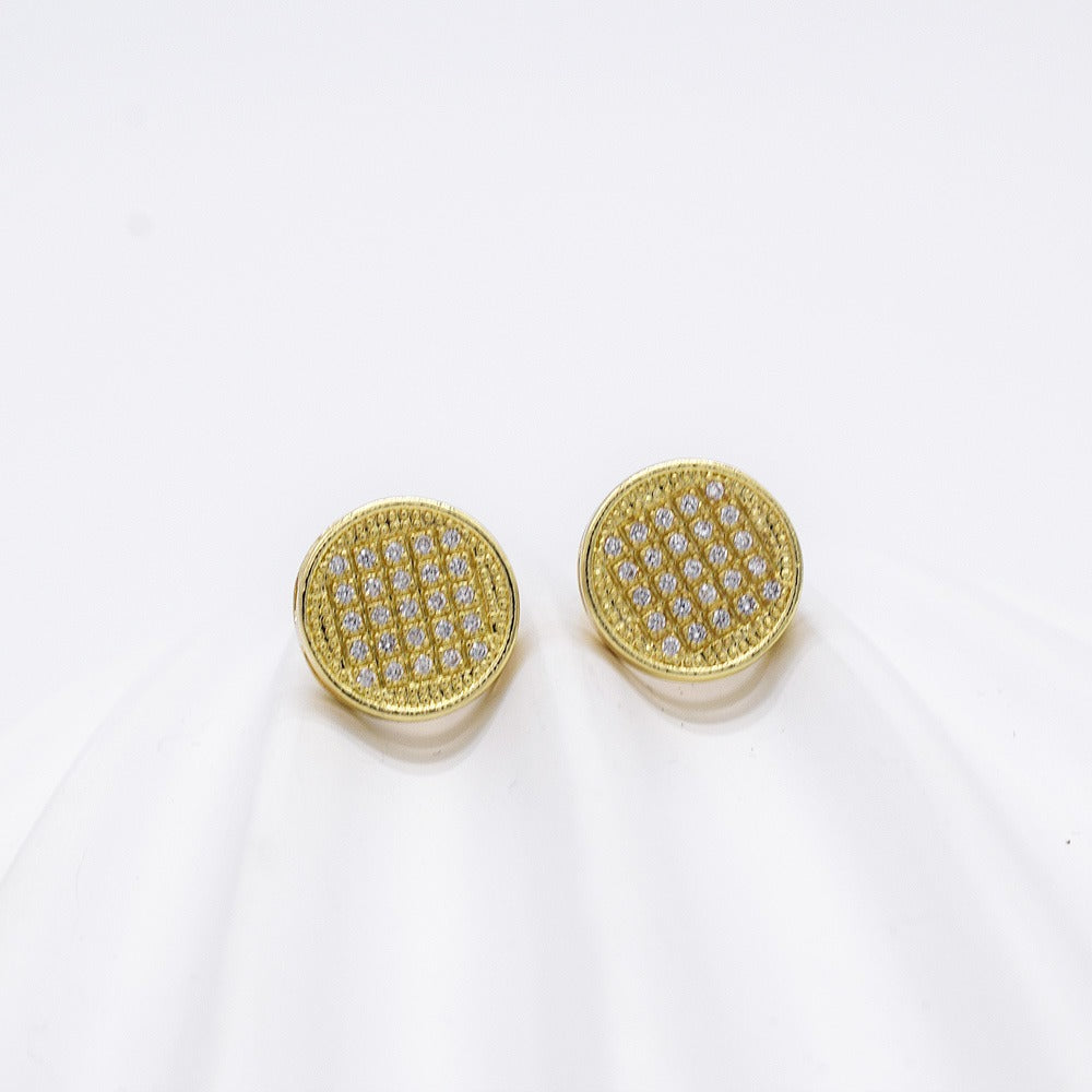 18k Layered Real Gold Filled round icedout earrings hip hop #19
