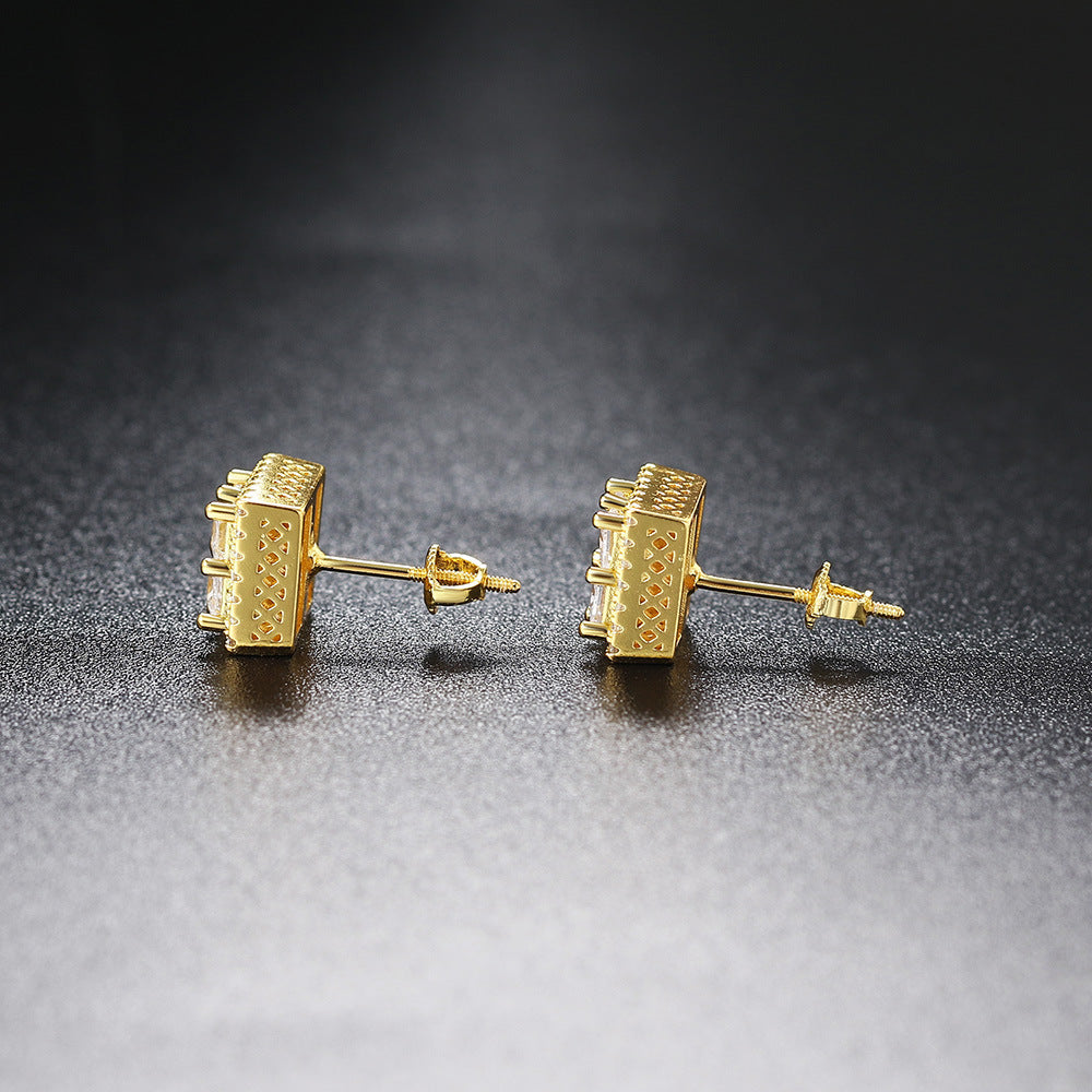 18k Layered Real Gold Filled Square pave earrings hip hop icedout screwback #24