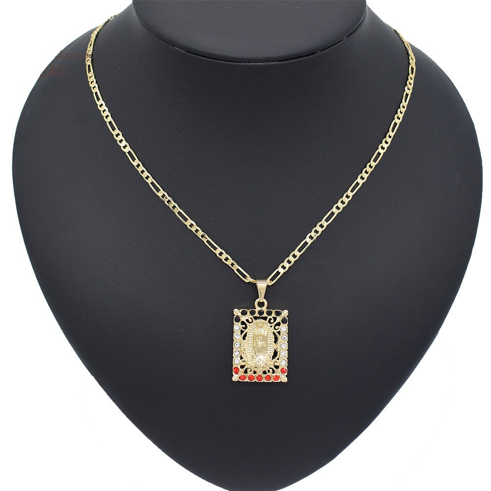 18k Layered Real Gold Filled Square virgin Mary pendant charm with 24" necklace chain #23