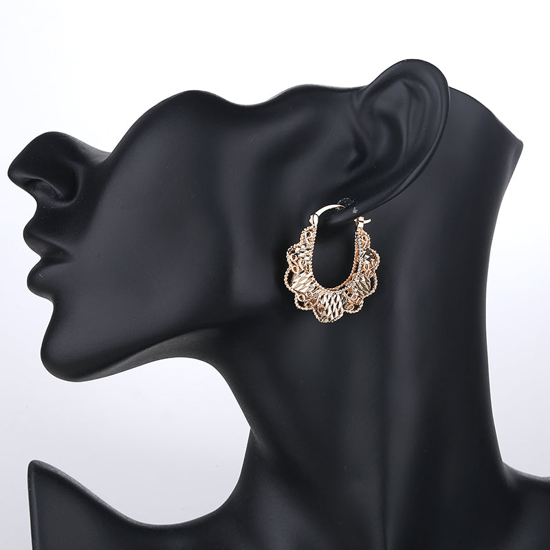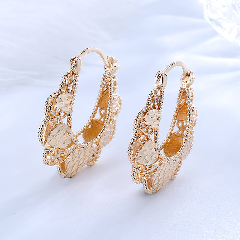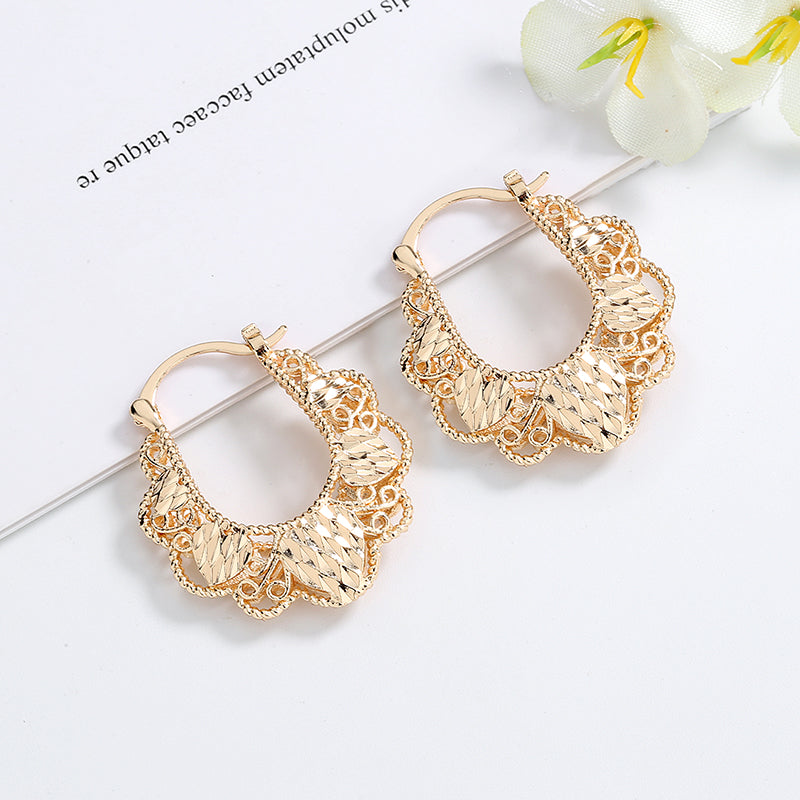 18k Layered real gold Plated basket hearts hoop earrings #49