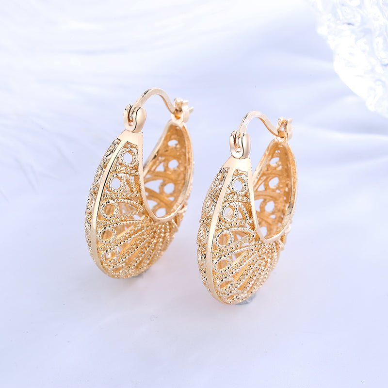 18k Layered real gold Plated basket hoop earrings #22