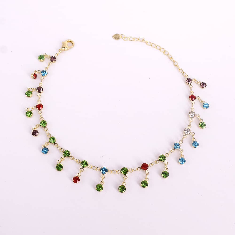 18k Layered real gold Plated colors stones anklet bracelet #15