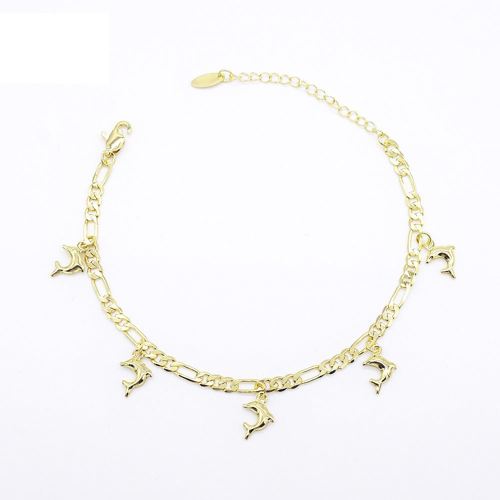 18k Layered real gold Plated dolphins anklet bracelet #33