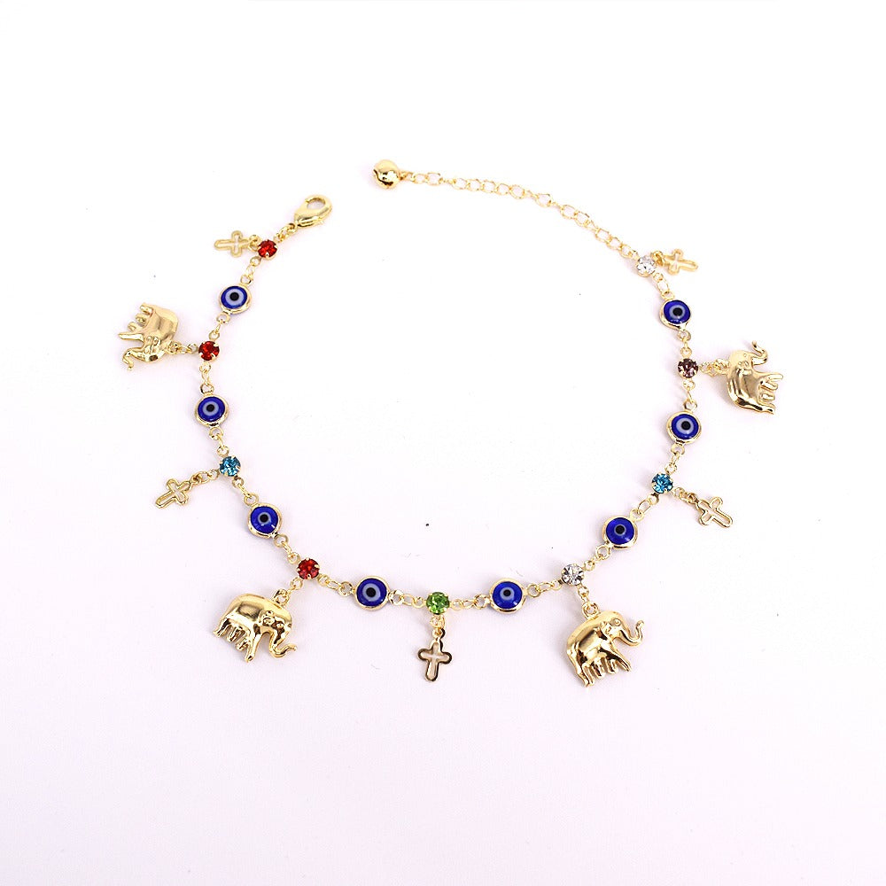 18k Layered real gold Plated elephants EVIL eyes anklet bracelet #36