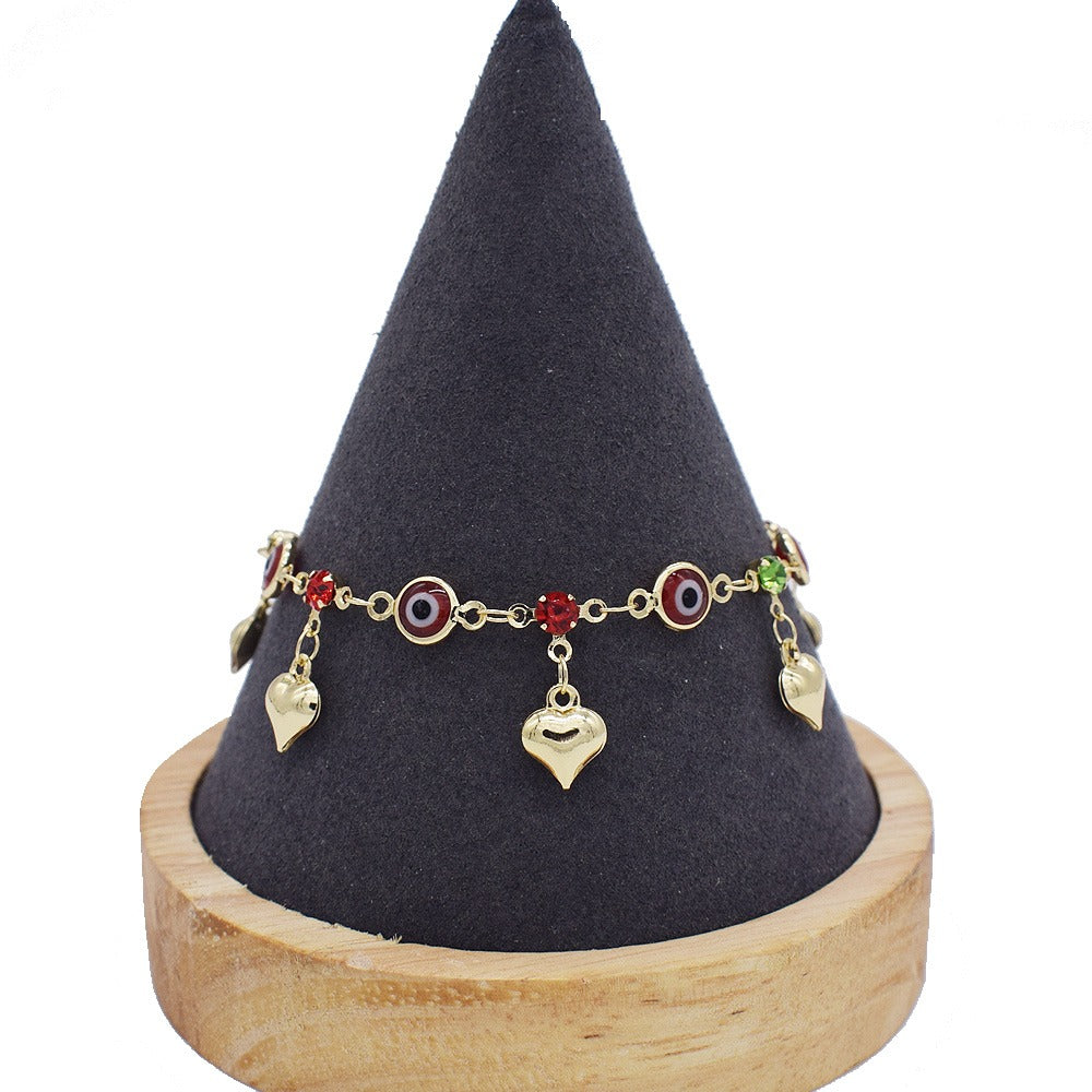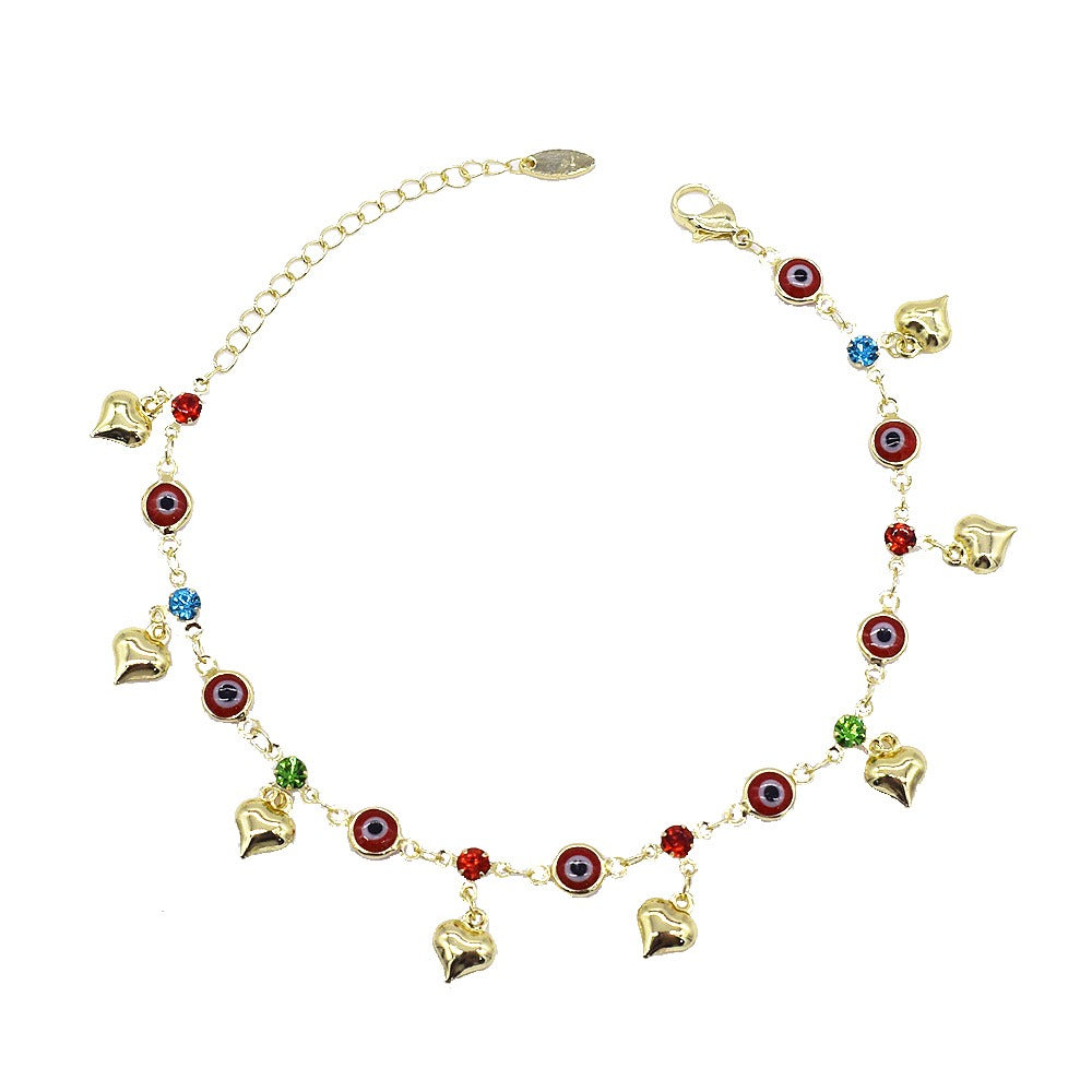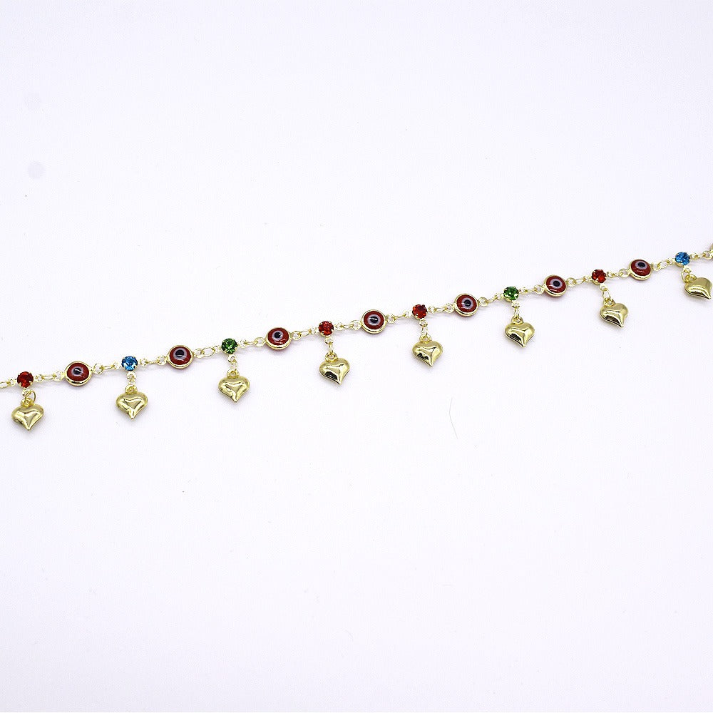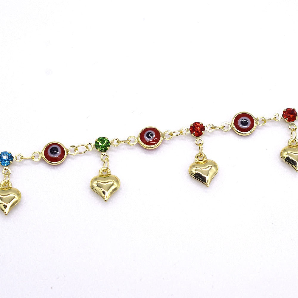 18k Layered real gold Plated eveil eyes hearts anklet bracelet colors stones #24