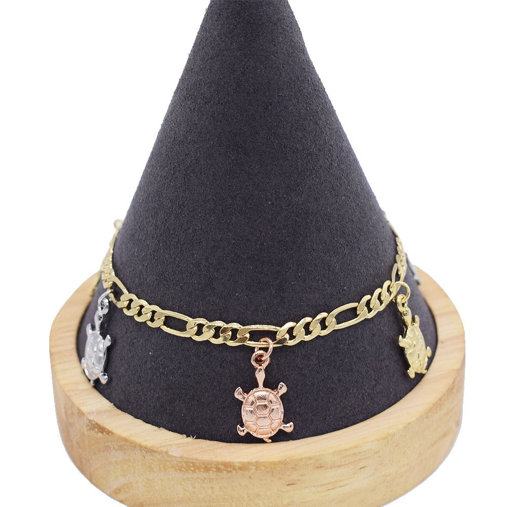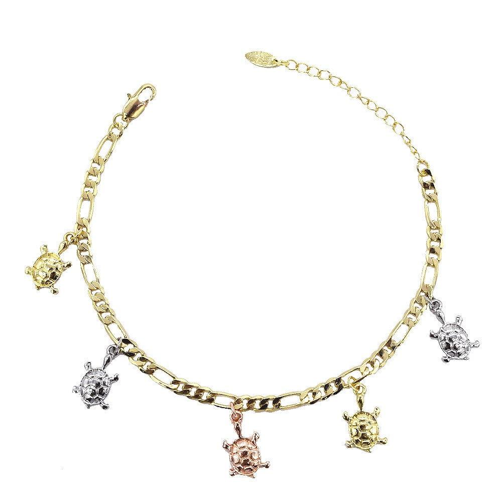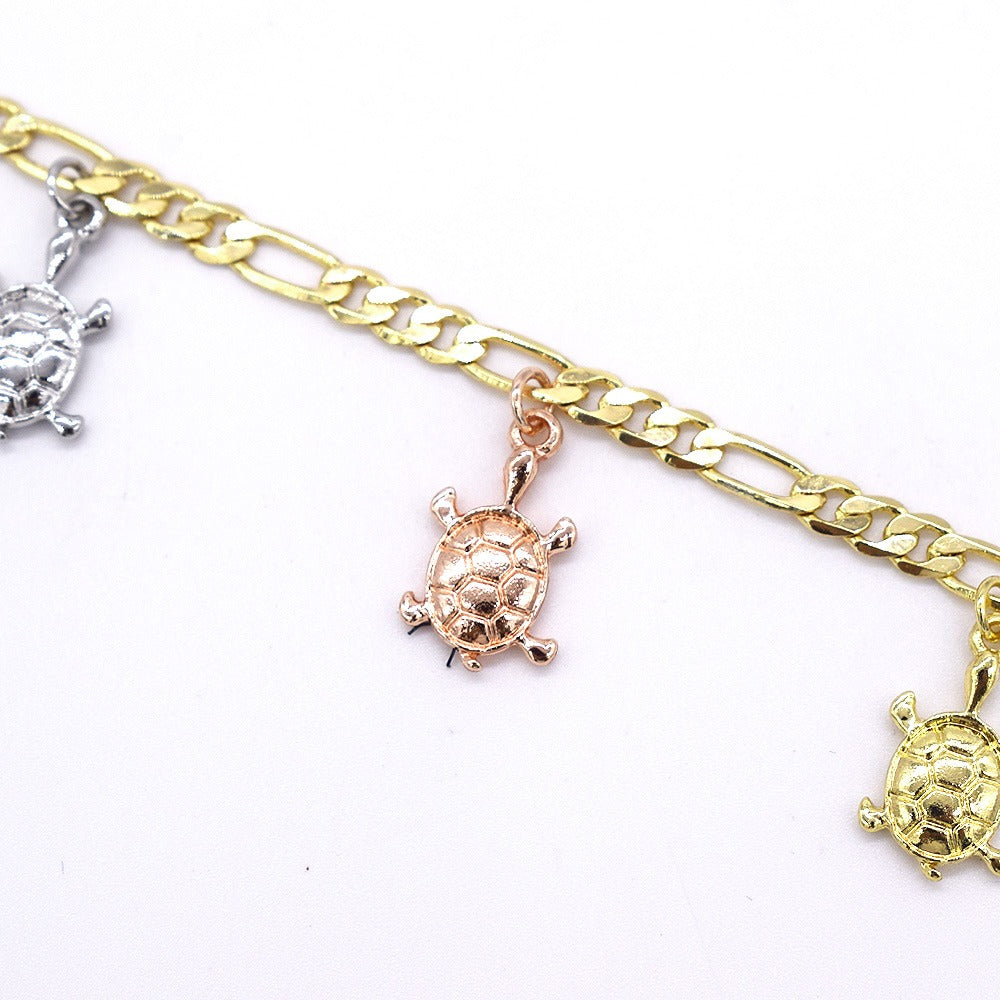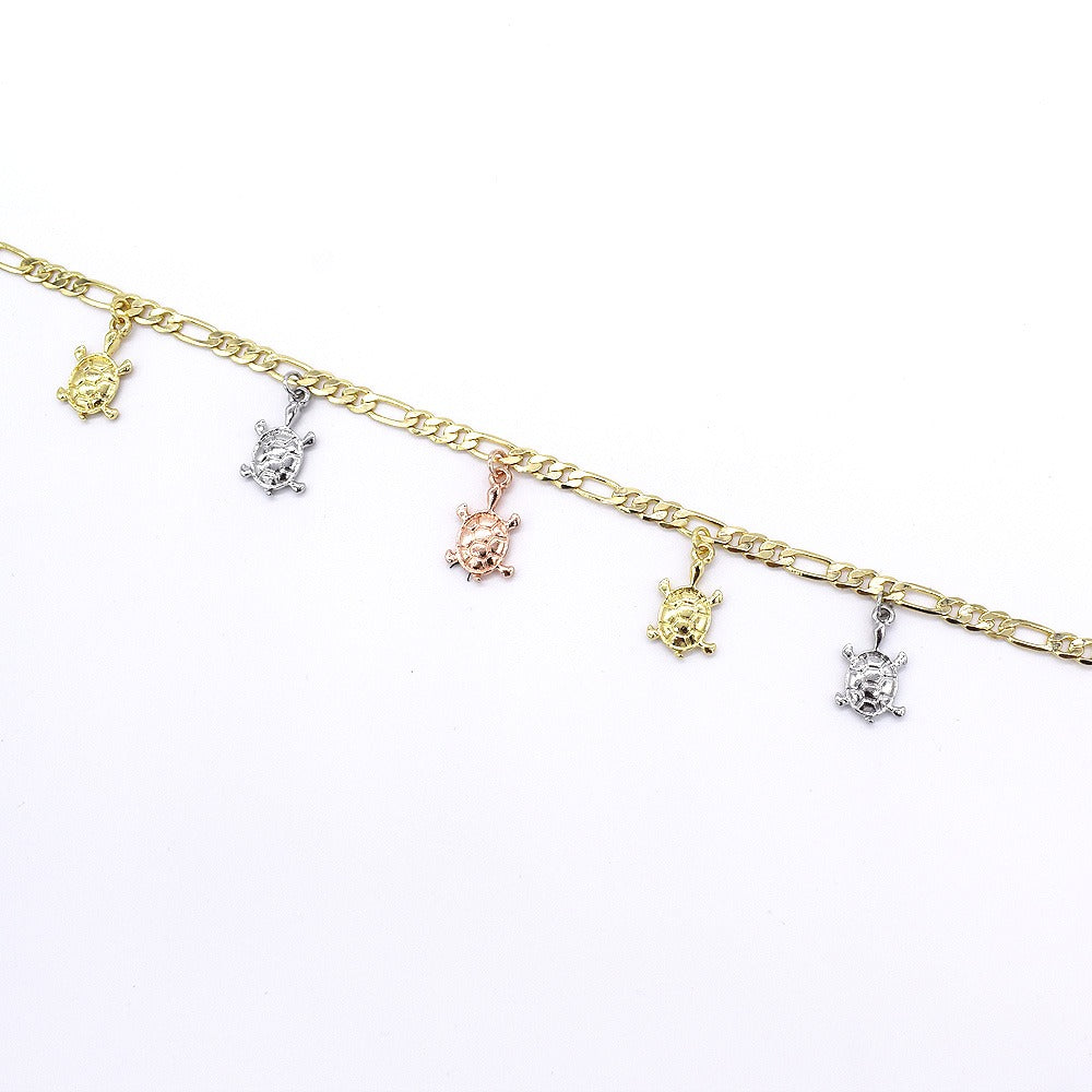 18k Layered real gold Plated Figaro links tri colors turtles anklet bracelet #10
