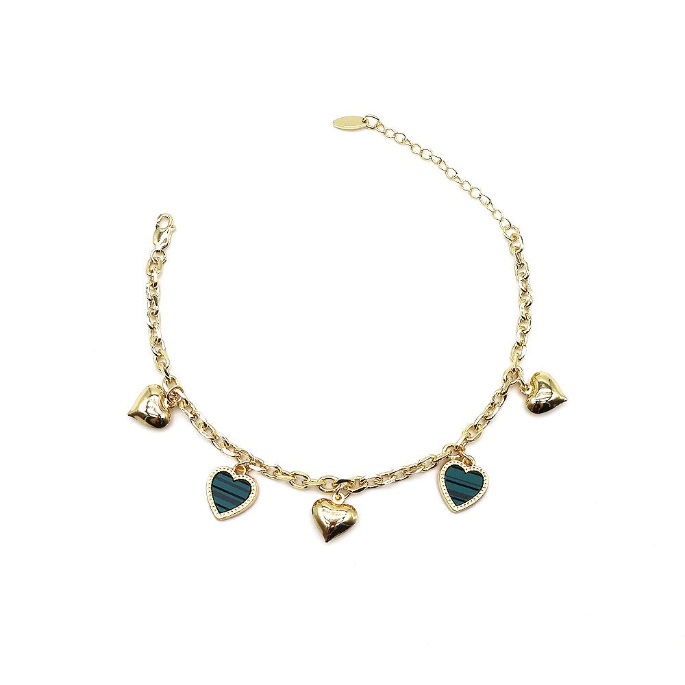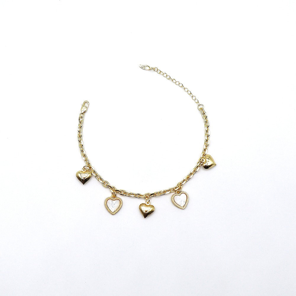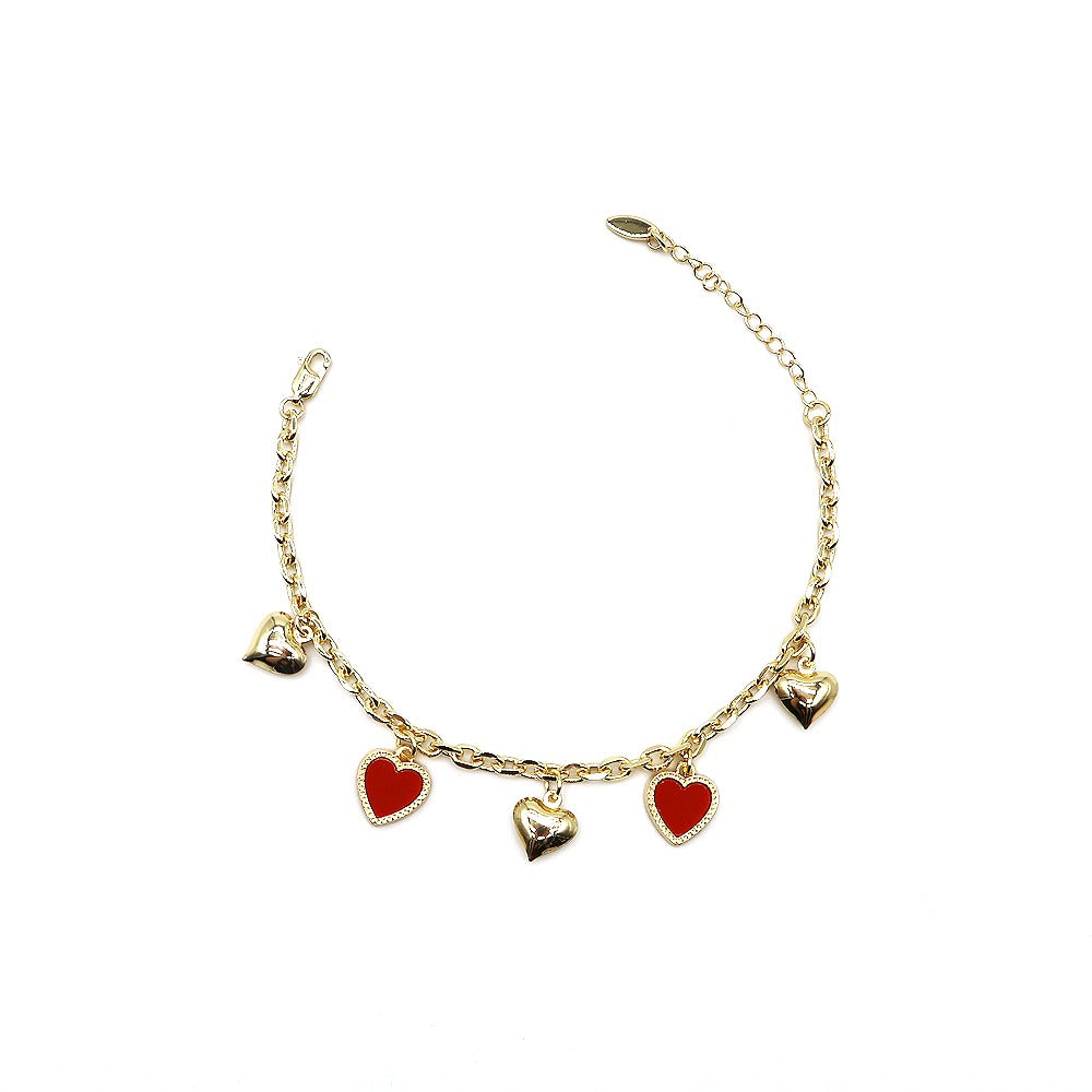 18k Layered Real Gold Plated Heart anklet bracelet 10 inches #49