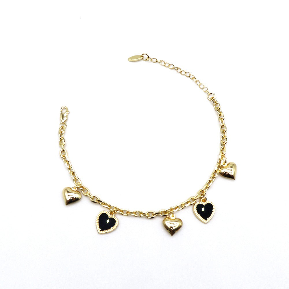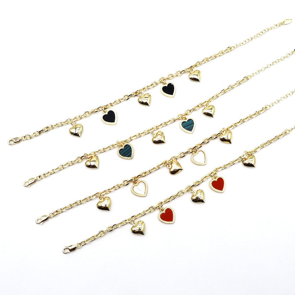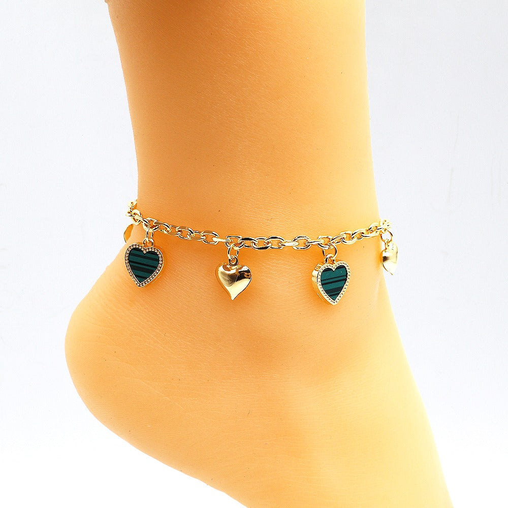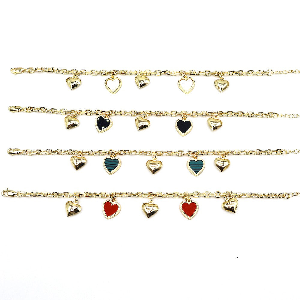 18k Layered Real Gold Plated Heart anklet bracelet 10 inches #49