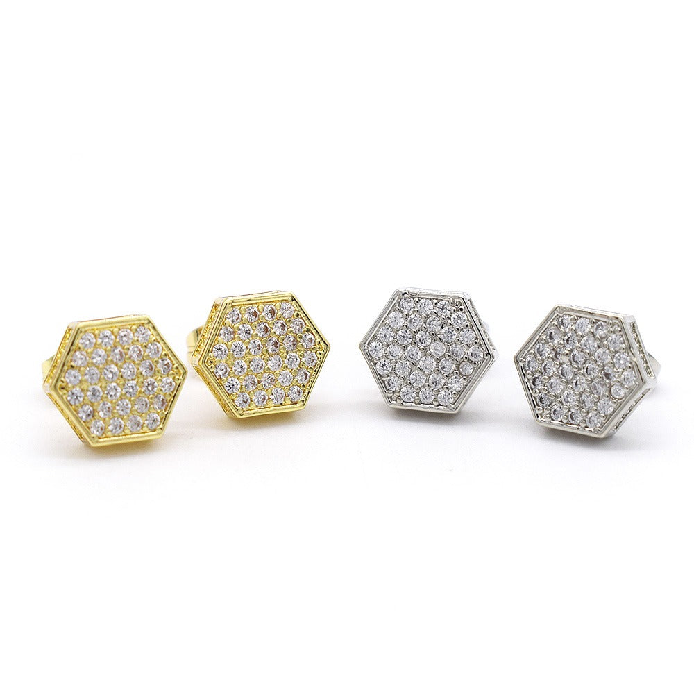 18k Layered Real Gold Plated icedout earrings hip hop #21