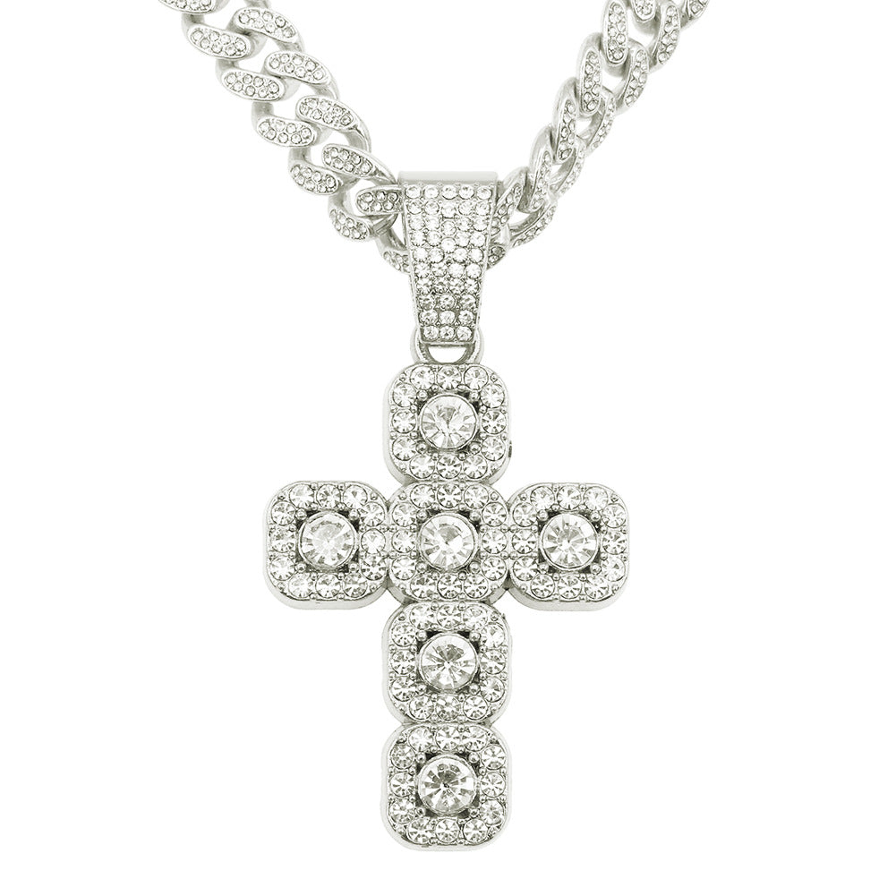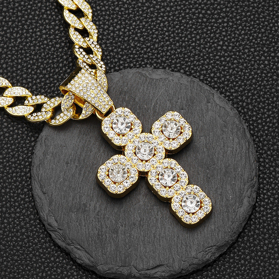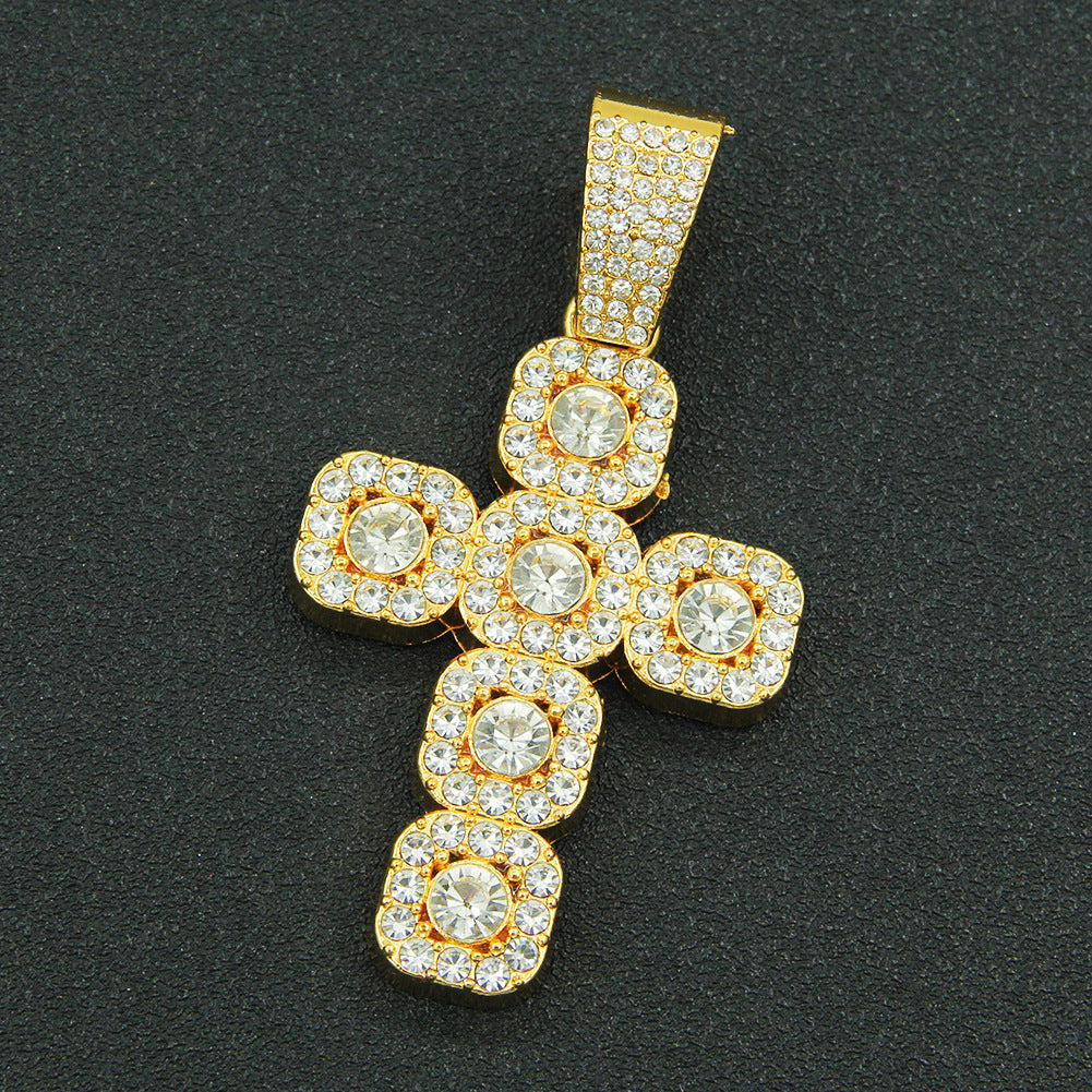 18k Layered Real Gold Plated icedout hip hop cross pendant charm with icedout chain #48