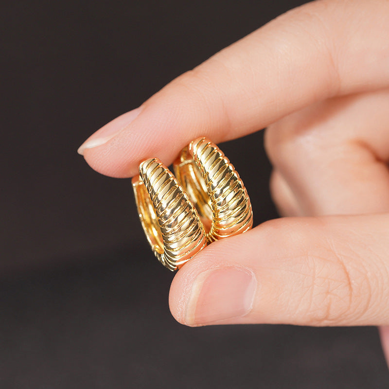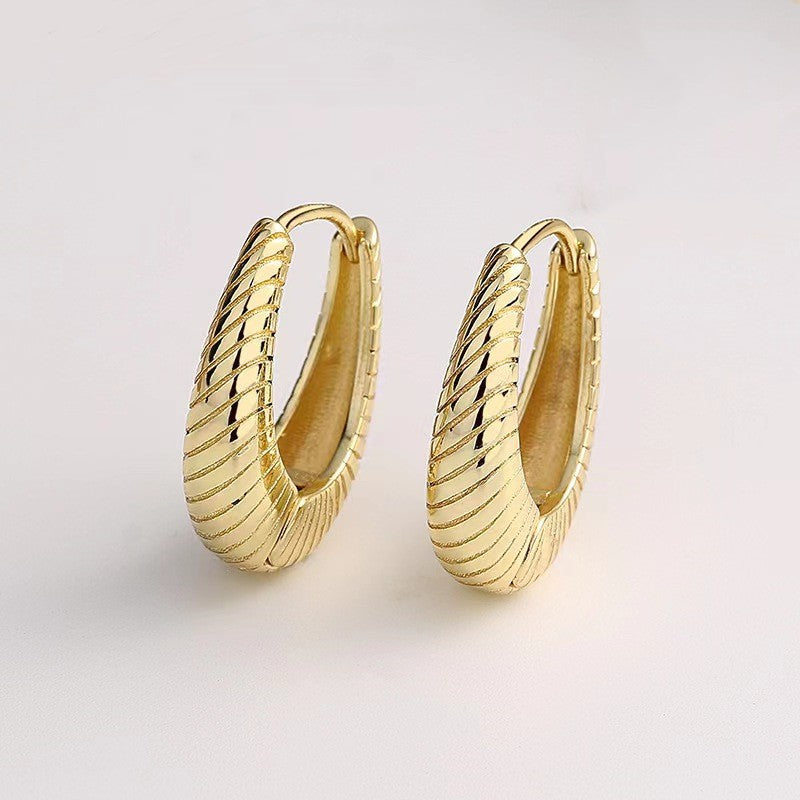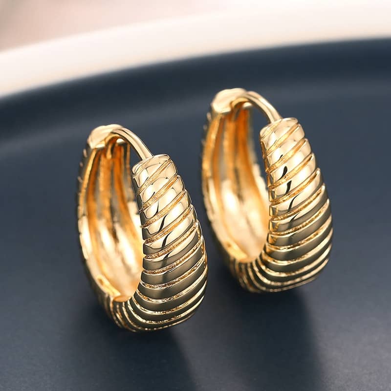 These elegant gold hoop earrings add a touch of sophistication to any outfit. Perfect for any occasion.