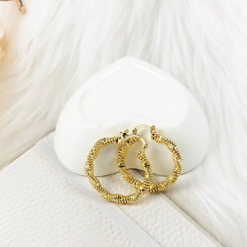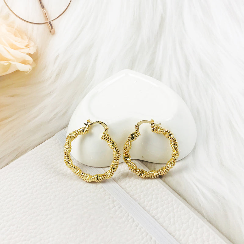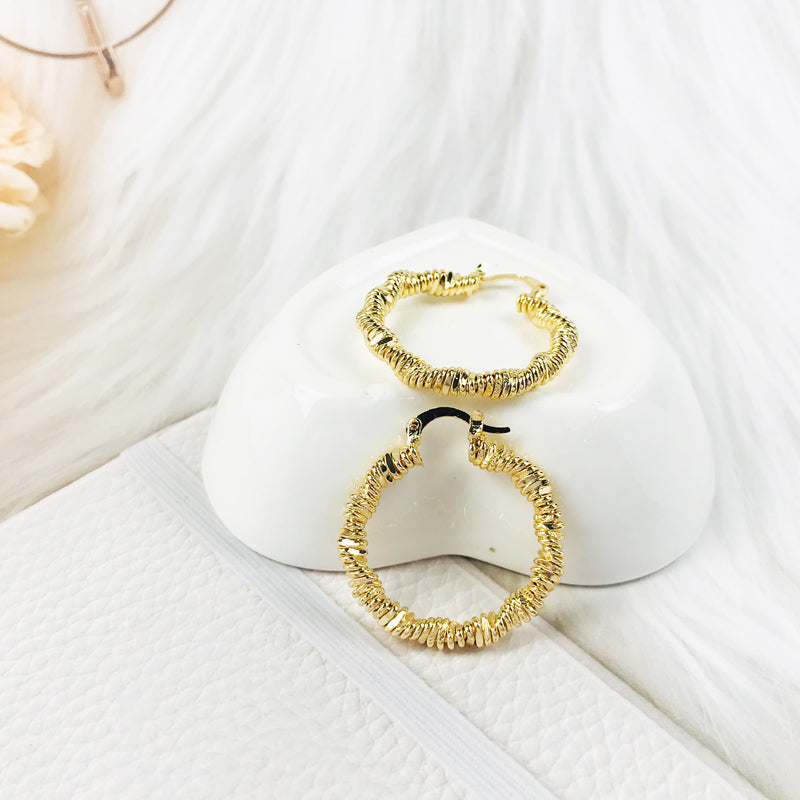 18k Layered real gold Plated Round hoop earrings #16