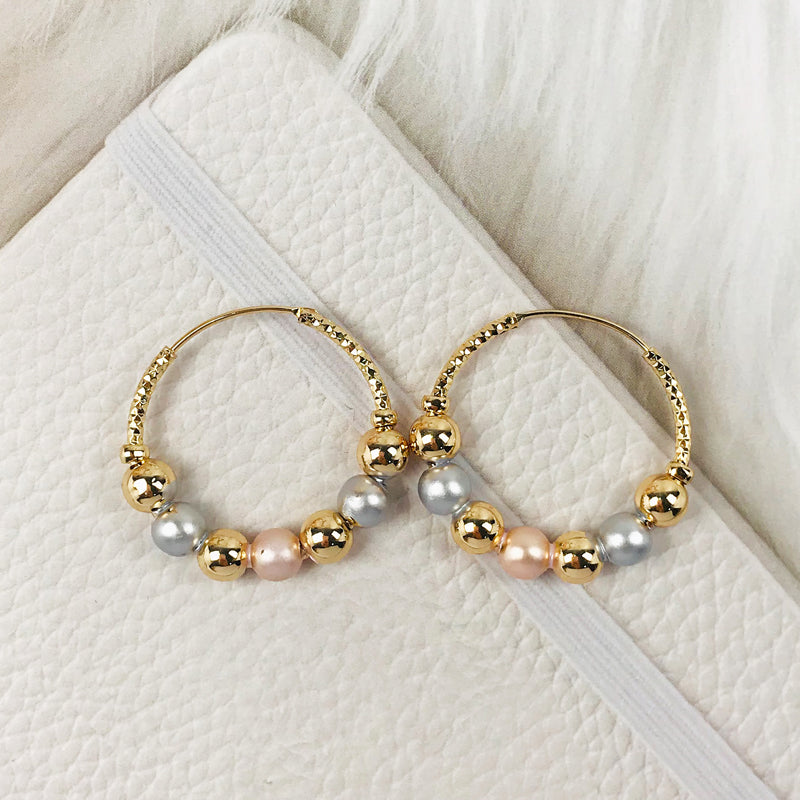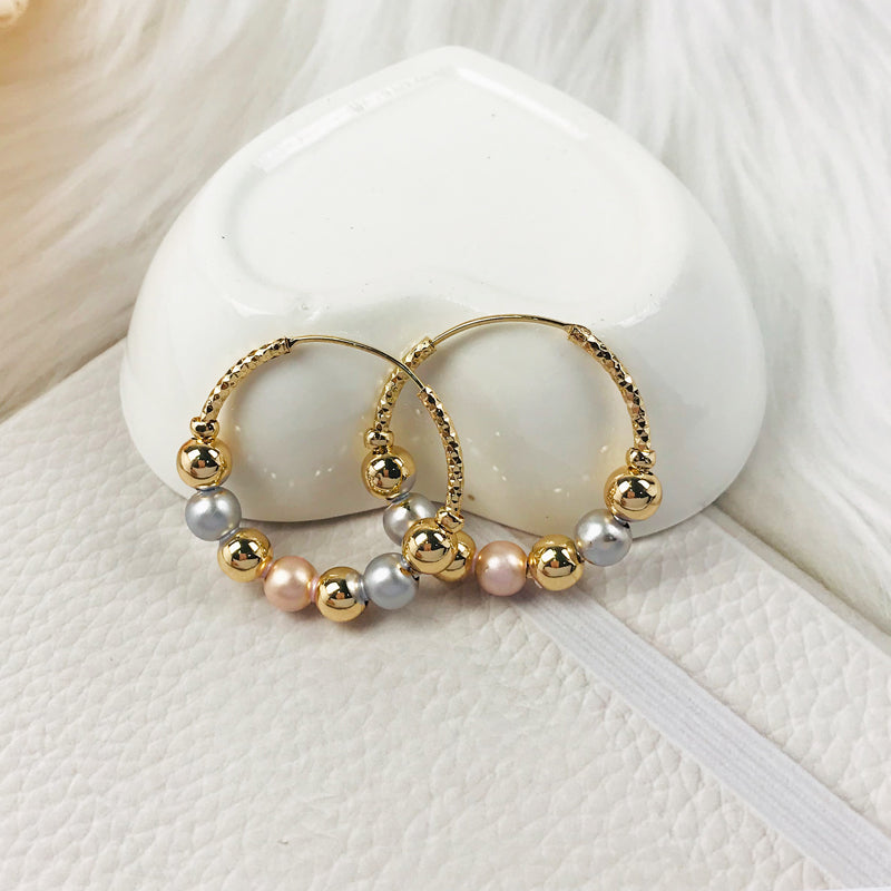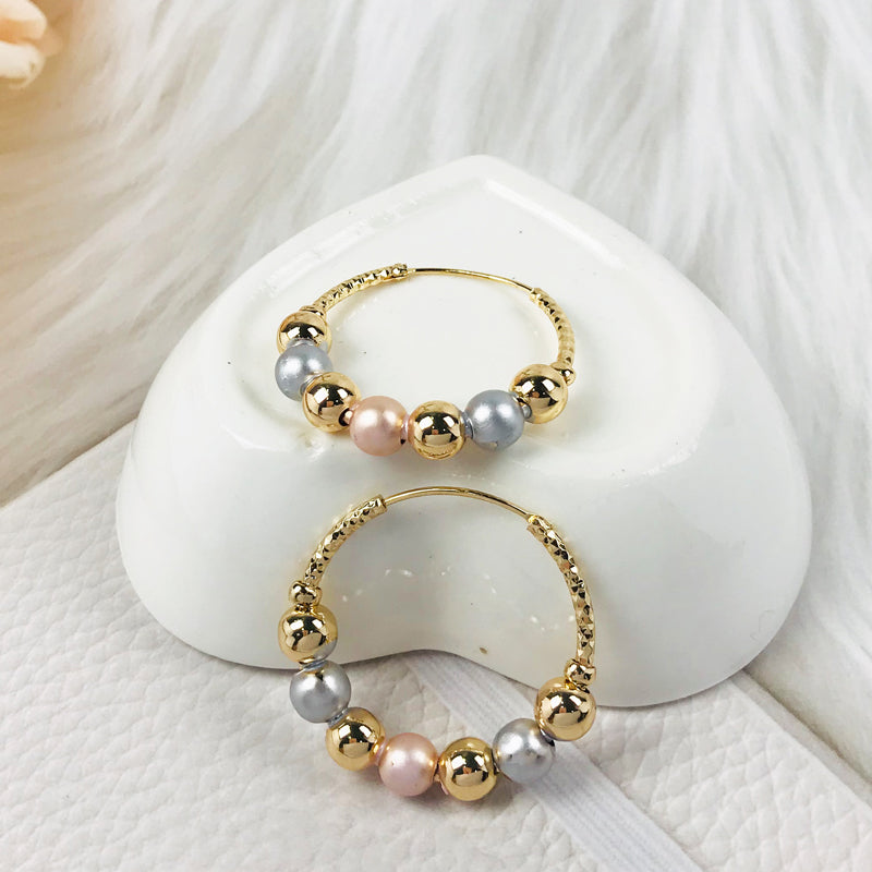 18k Layered real gold Plated Round tri colors hoop earrings #35