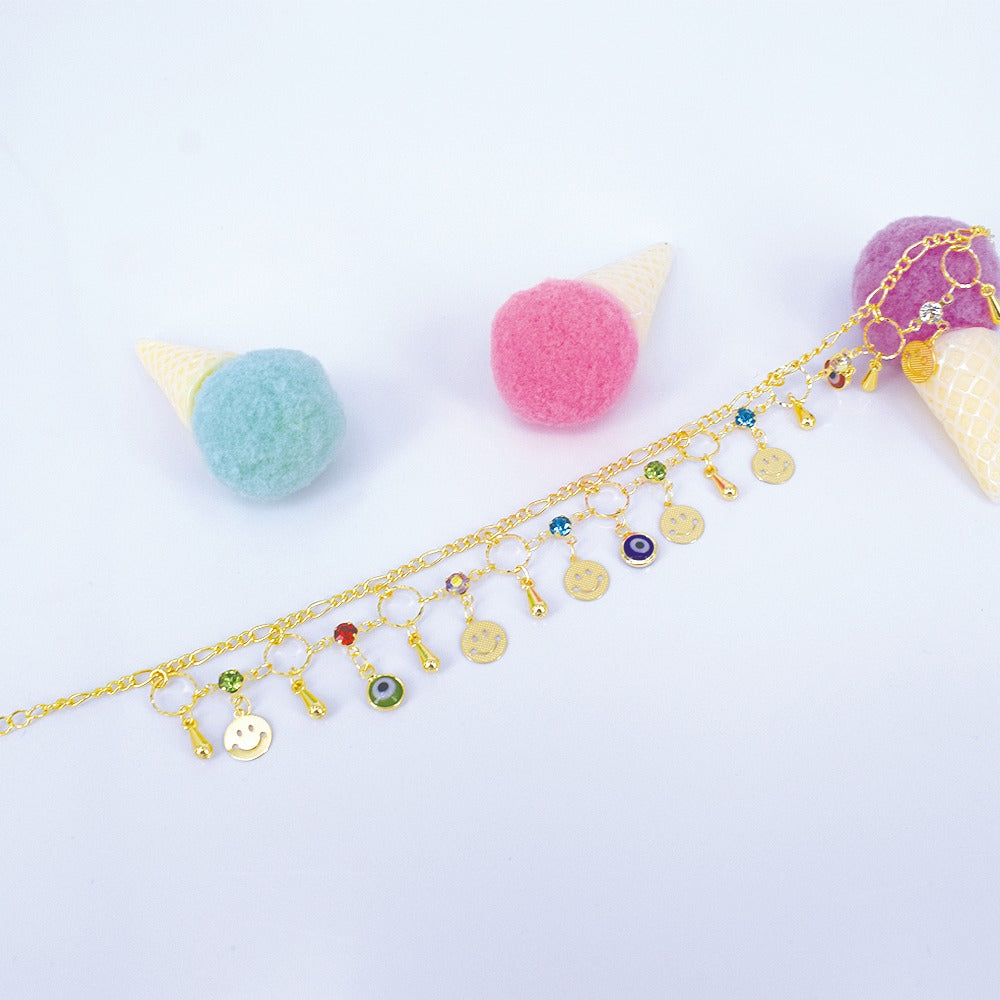 18k Layered real gold Plated smiley face EVIL eyes anklet bracelet #26