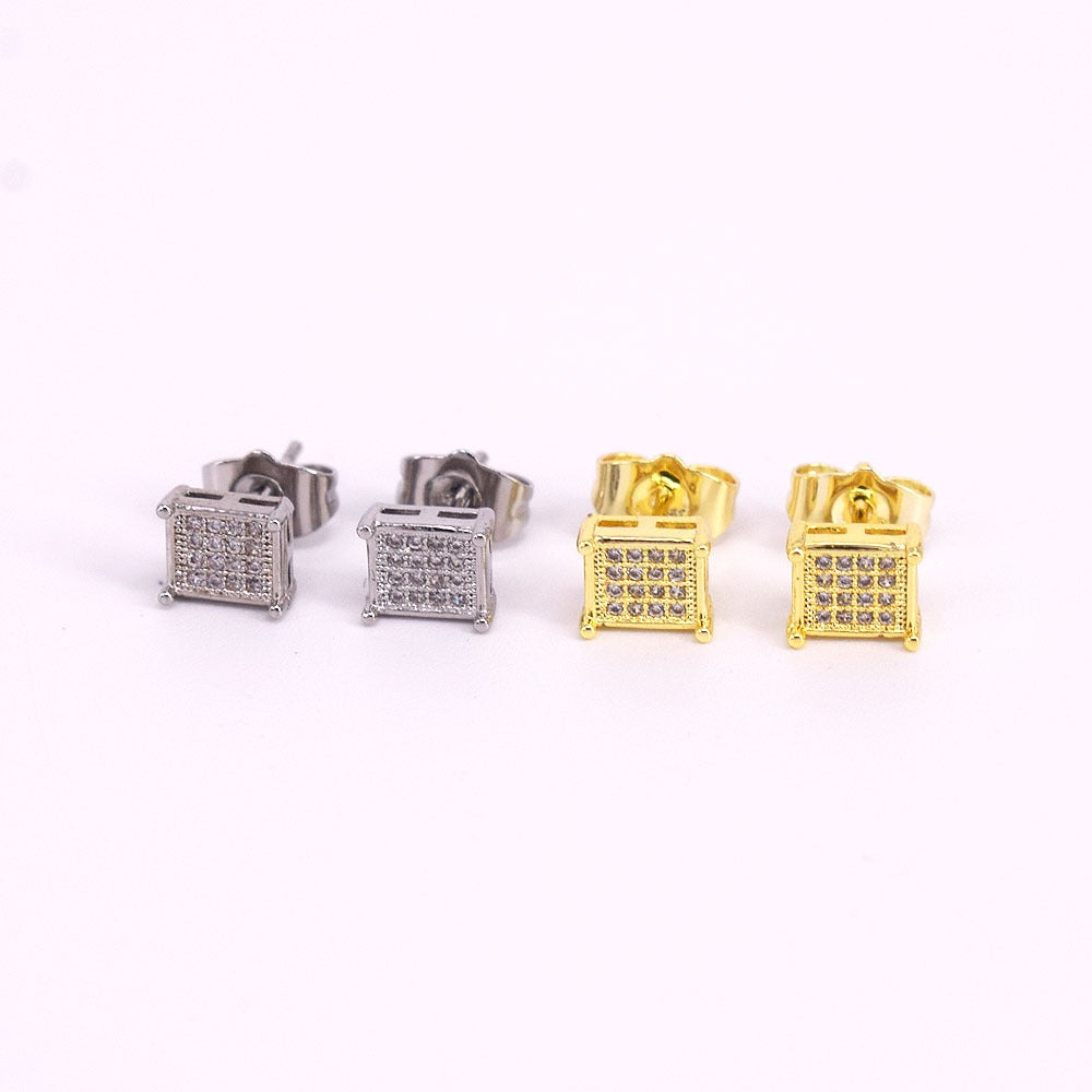 18k Layered Real Gold Plated Square earrings hip hop icedout pave settings #9