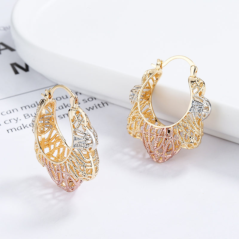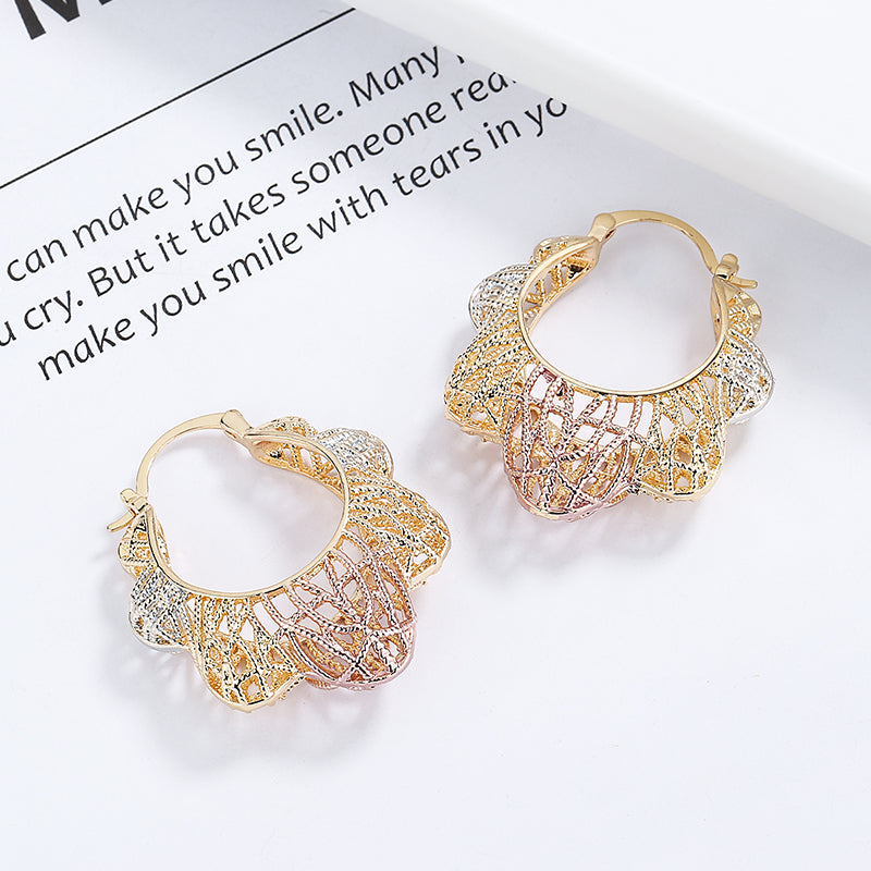18k Layered real gold Plated tri colors basket hoop earrings #81