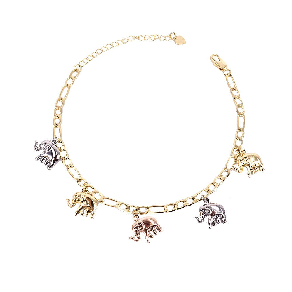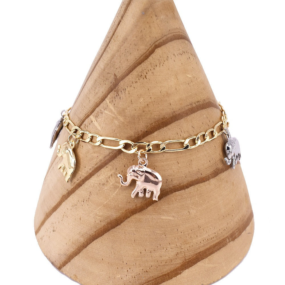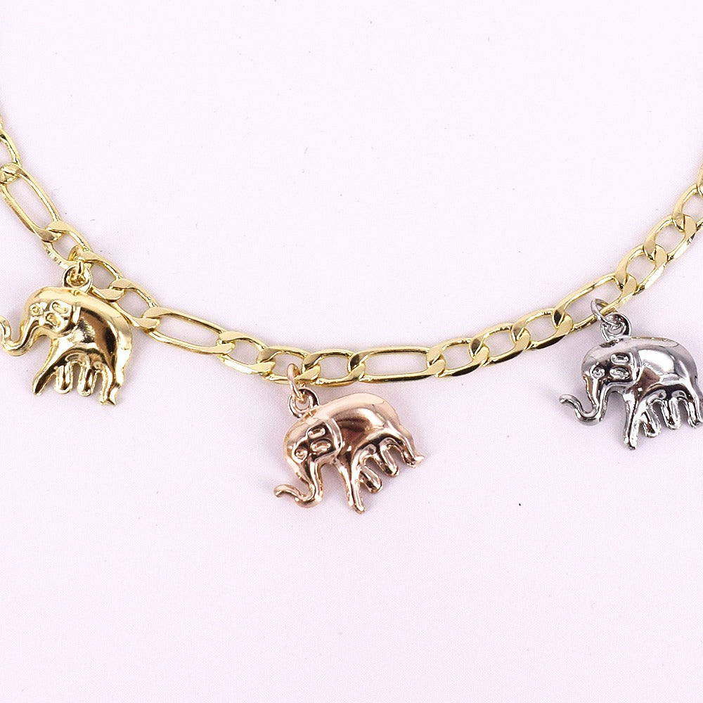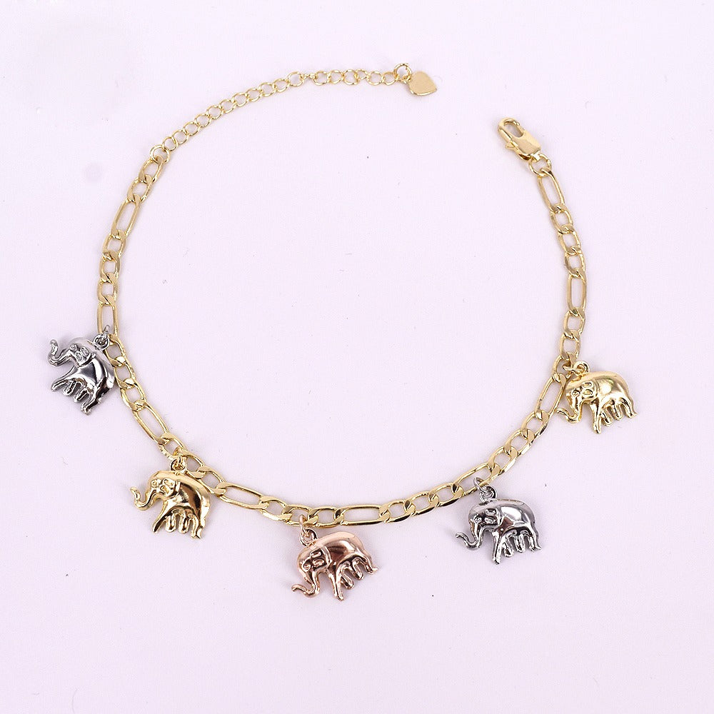 18k Layered real gold Plated tri colors elephants anklet bracelet #18