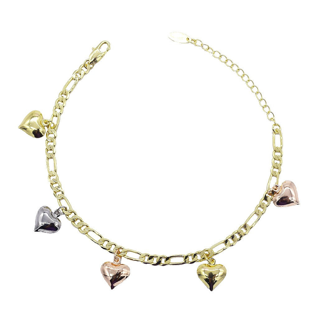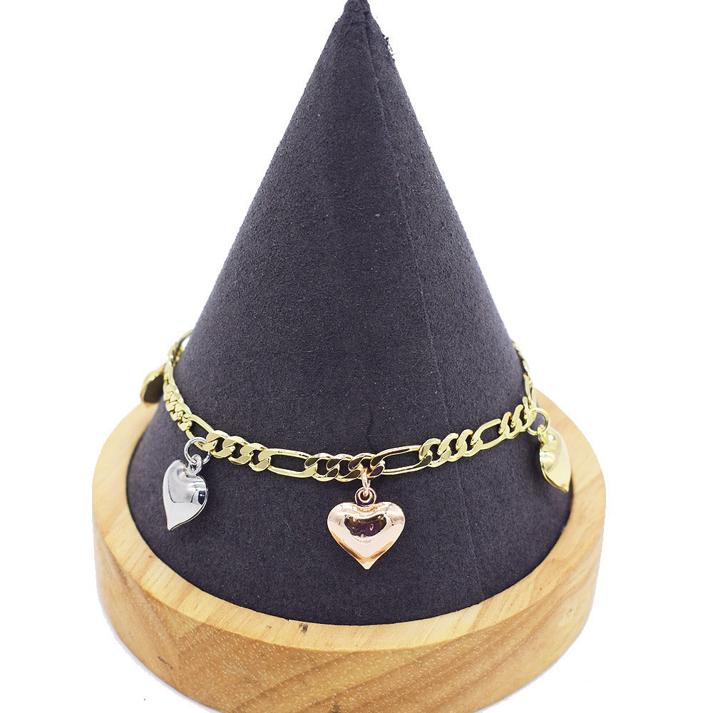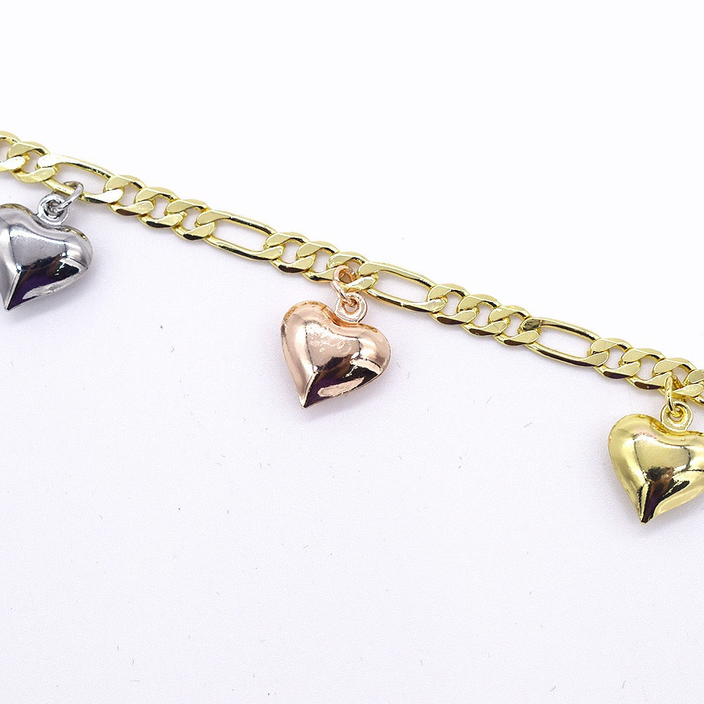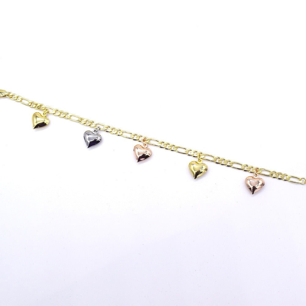 18k Layered real gold Plated tri colors hearts anklet bracelet #25