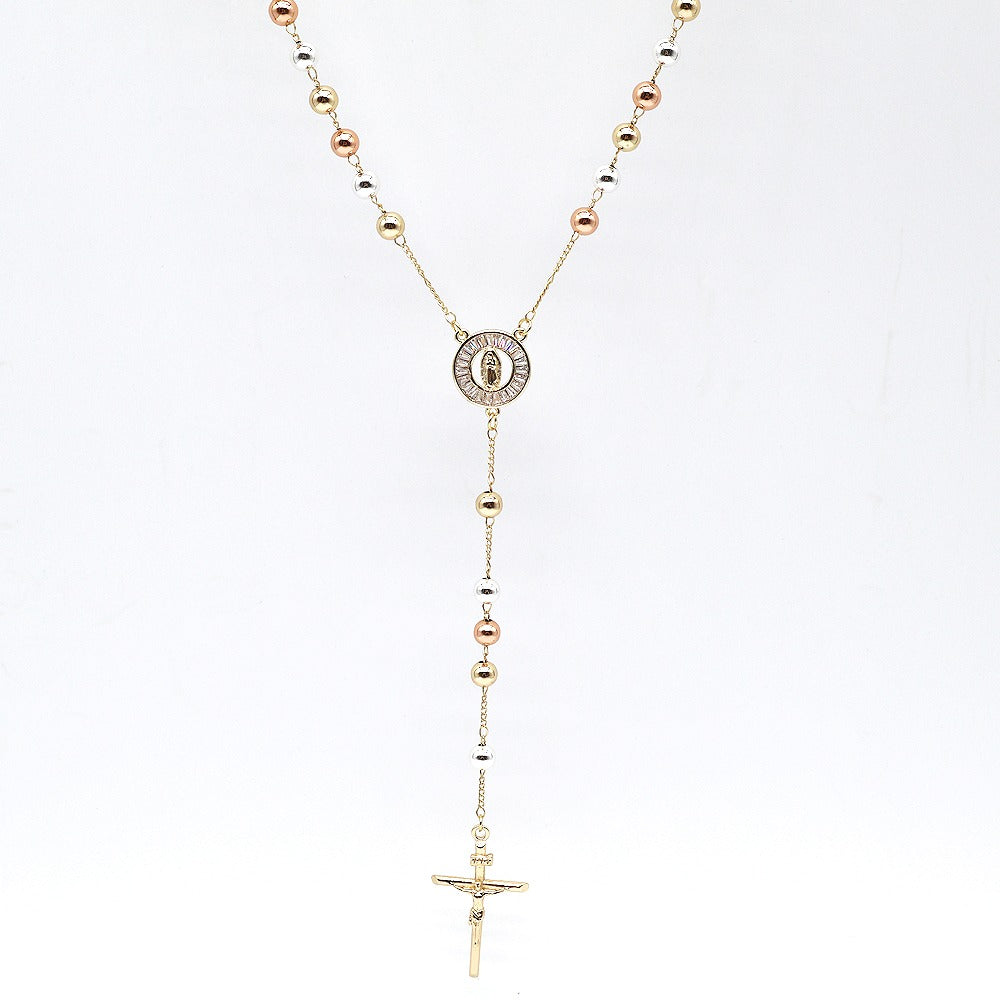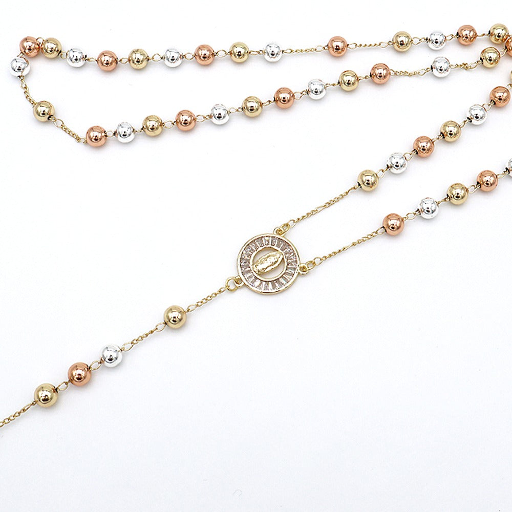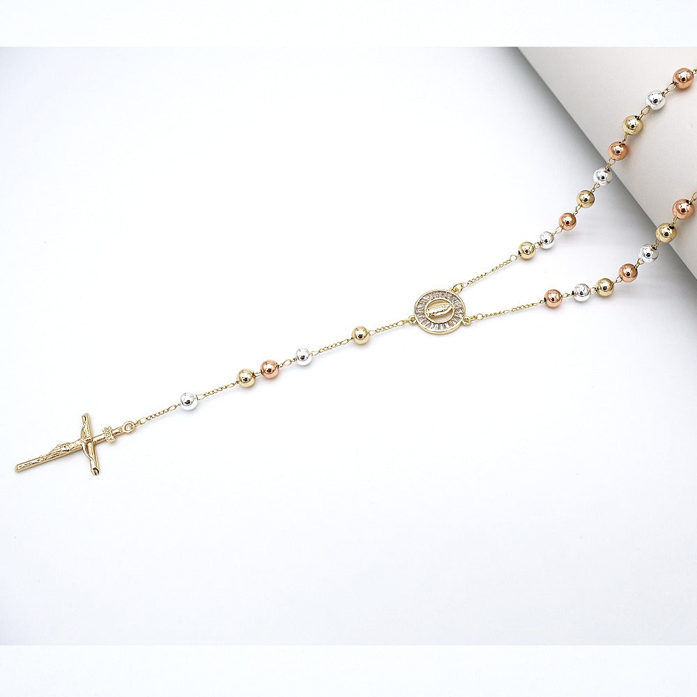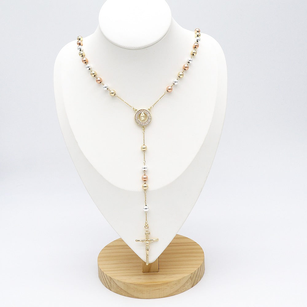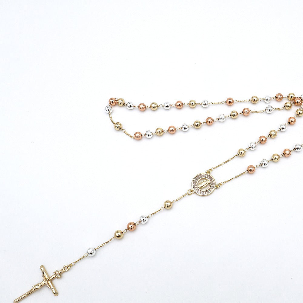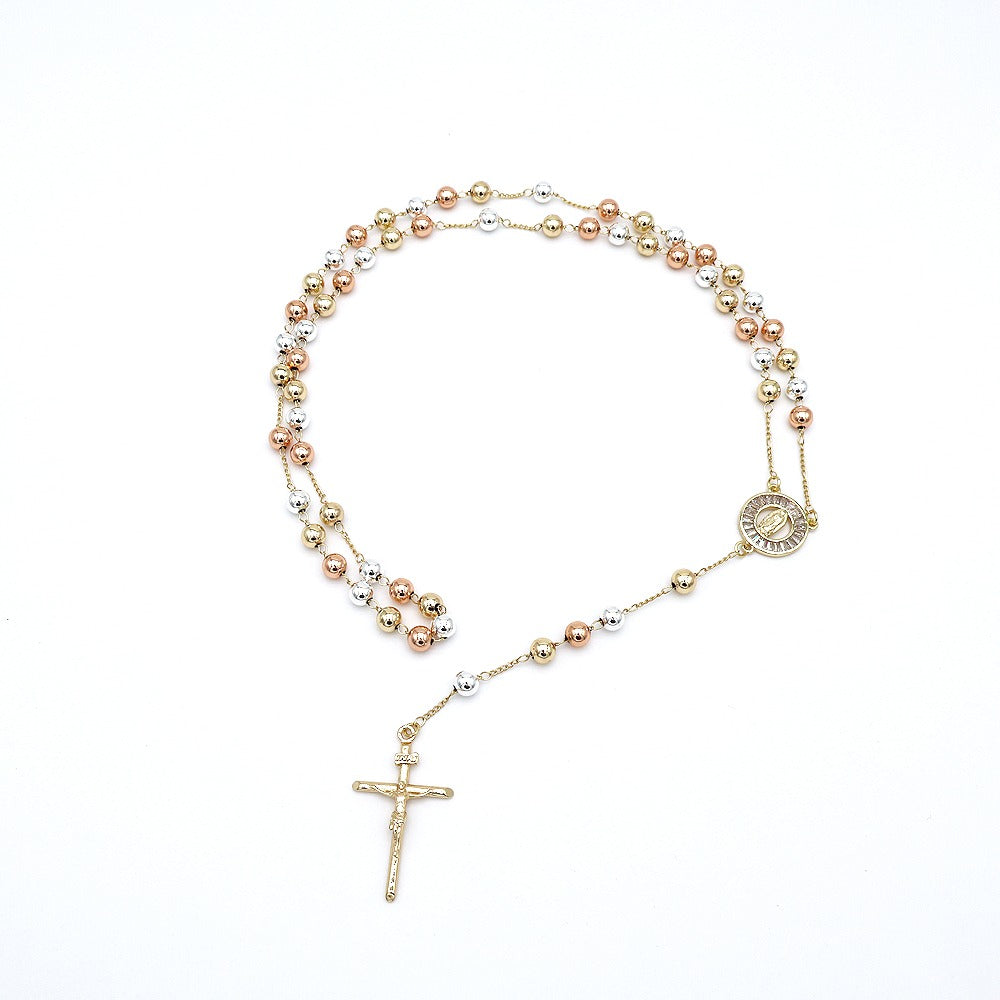 18k Layered Real Gold Plated tri colors religious rosary necklace #15