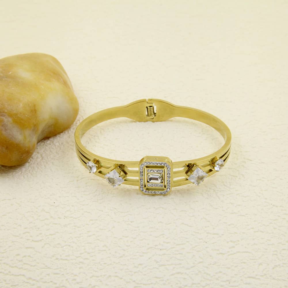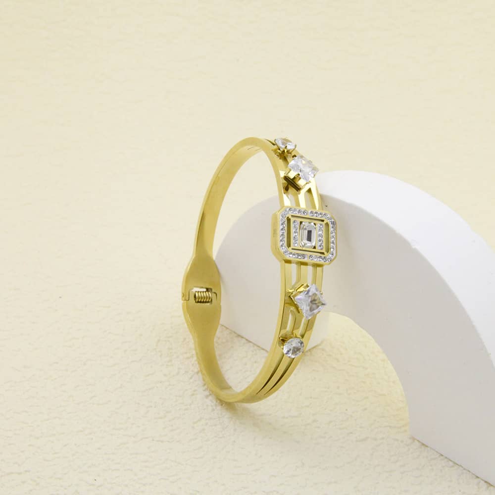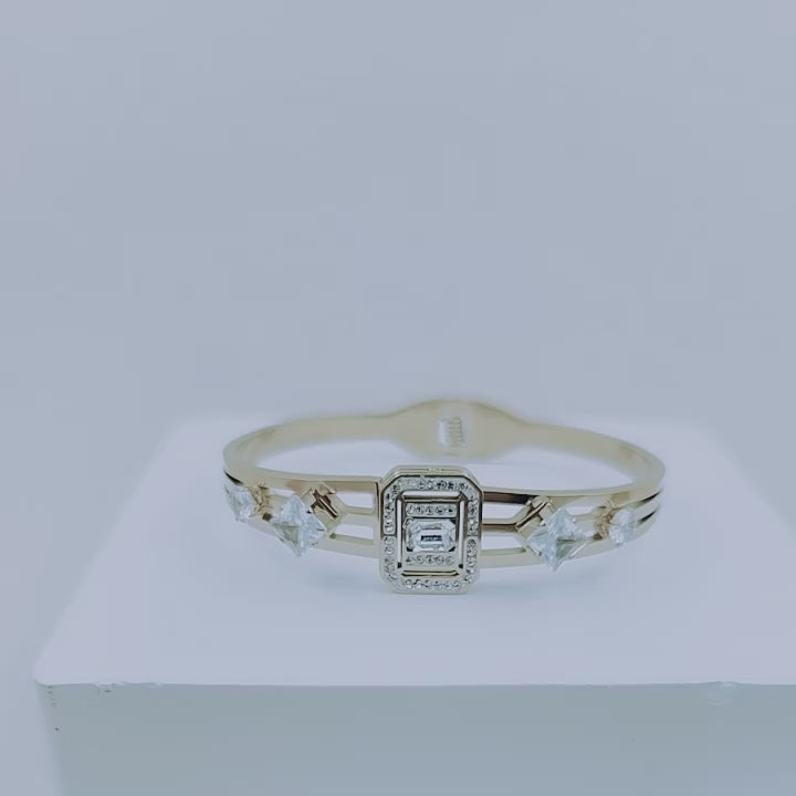 18k Layered Real Stainless Steel Solid Fancy Bangle Cubic Zirconia #11