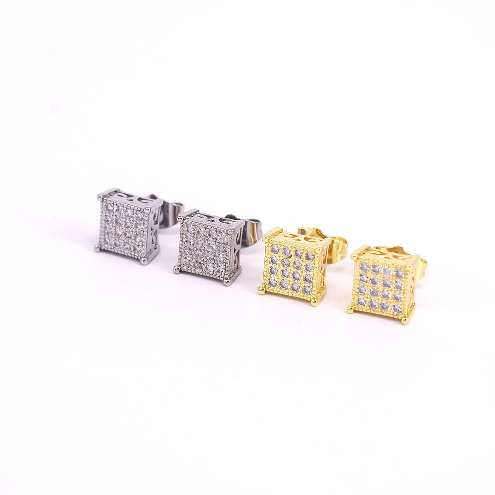 Hip hop icedout 3D square earrings pave settings Cubic Zirconia Real Gold Filled #4