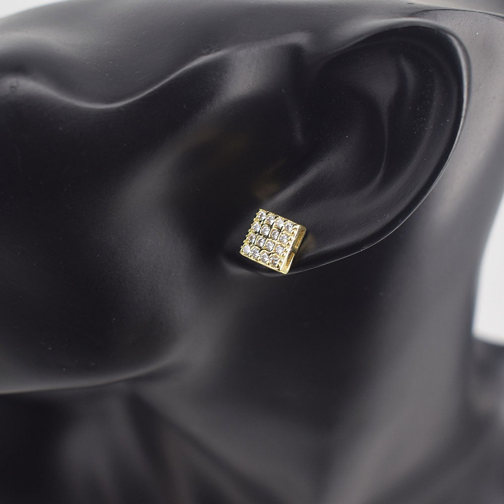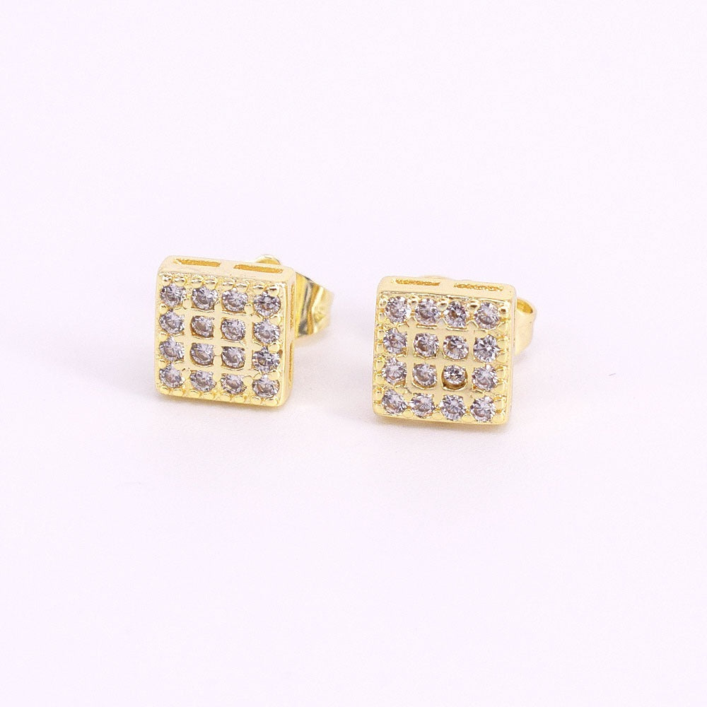 Hip hop icedout square earrings pave settings Cubic Zirconia Real Gold Filled #2