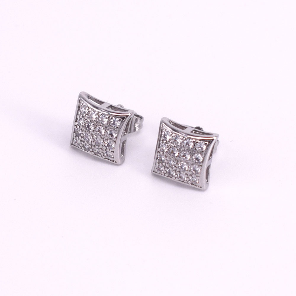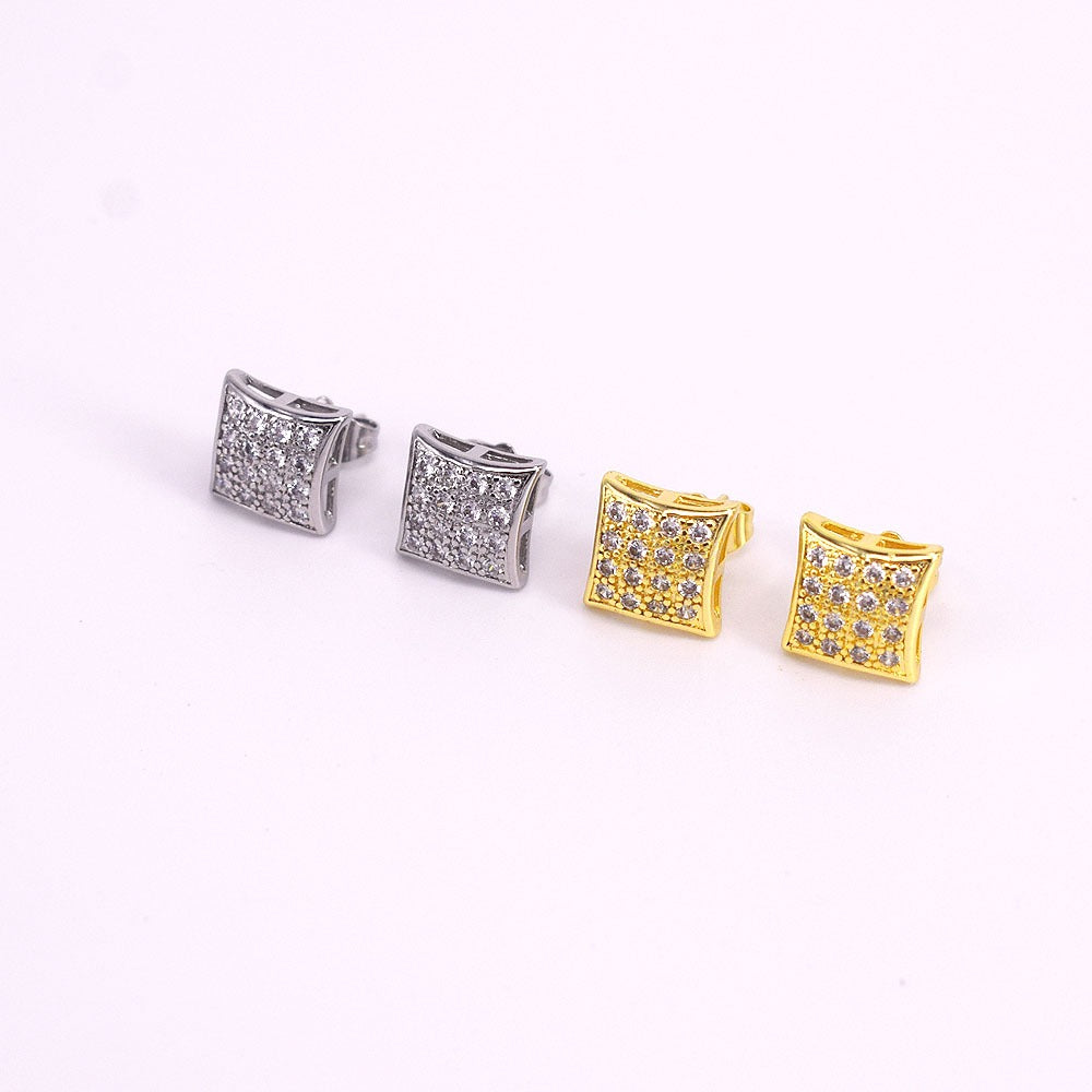 Hip hop icedout square earrings pave settings Cubic Zirconia Real Gold Filled #3
