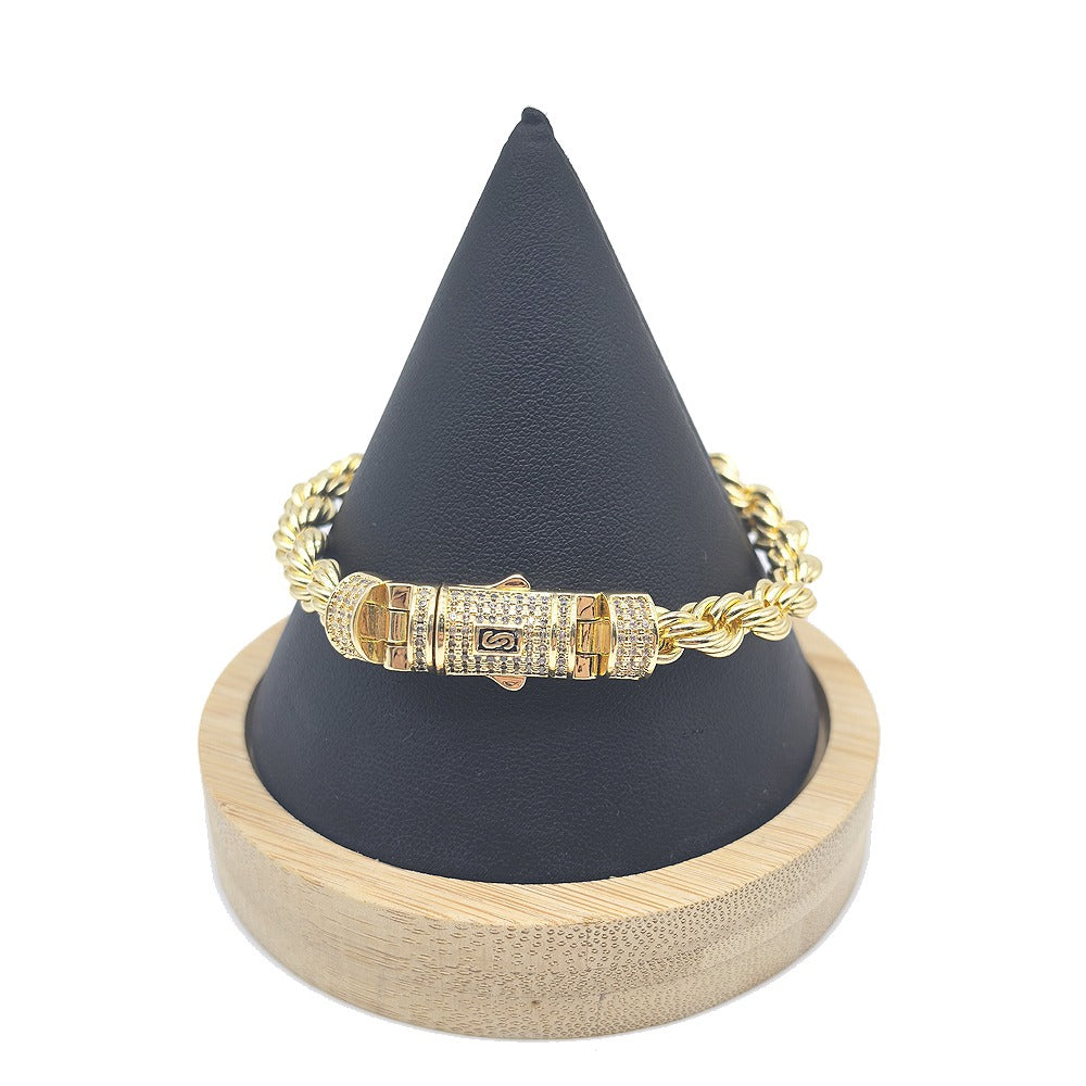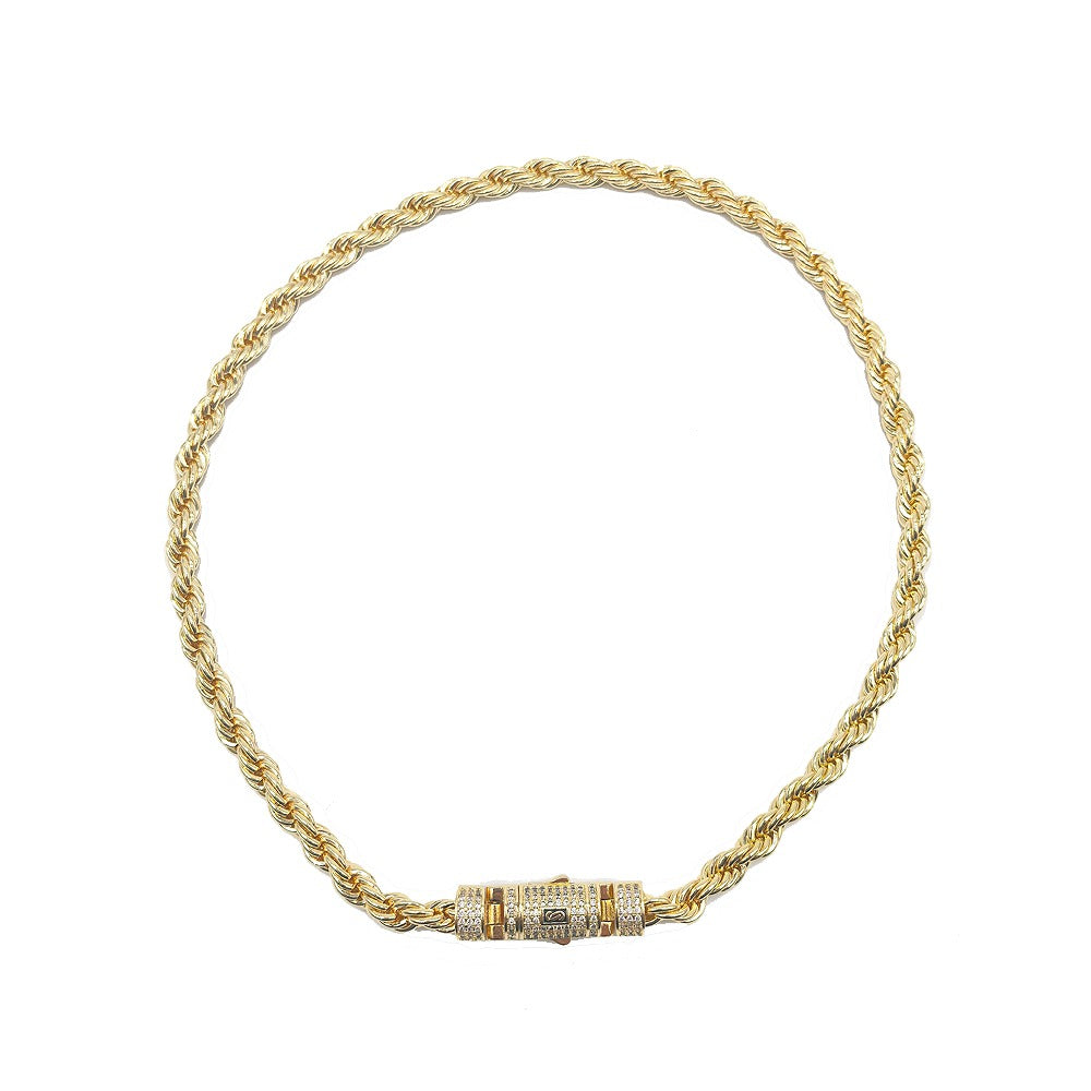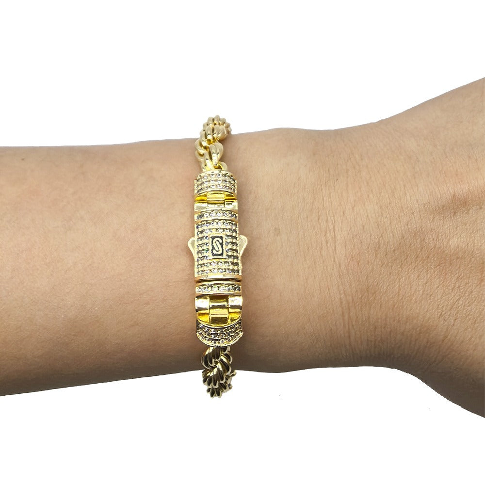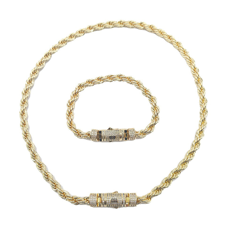 Hip hop rope links set necklace bracelet icedout lock gold Plated #186