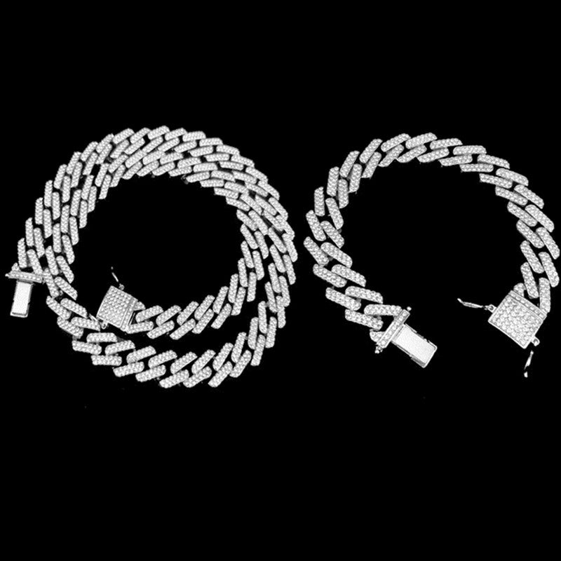 Hip hop set icedout necklace bracelet watch silver color gold Plated #210
