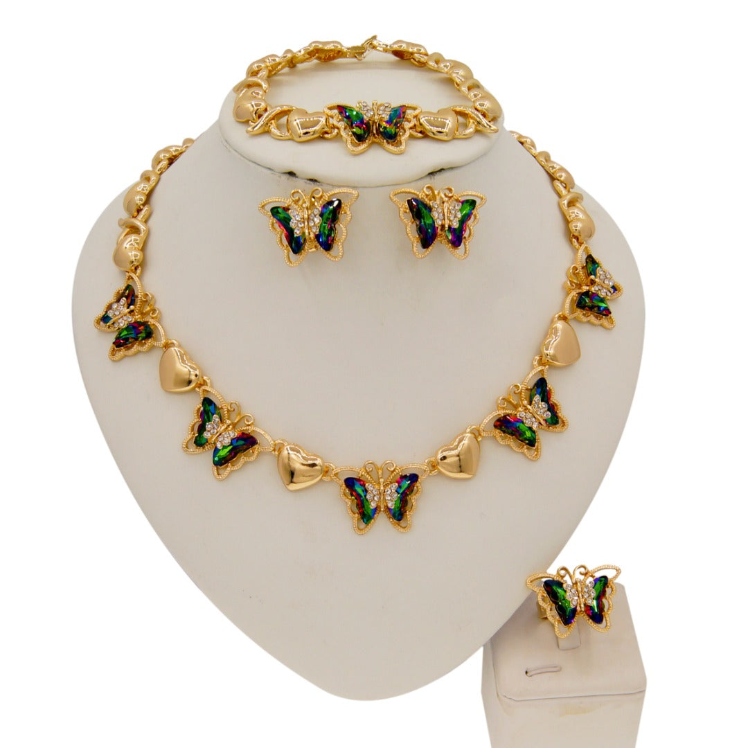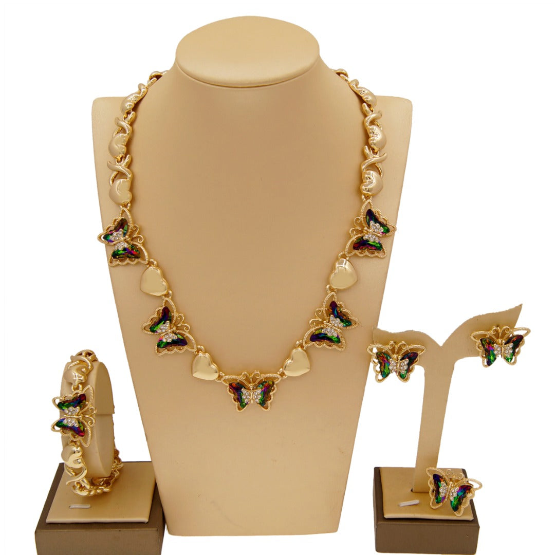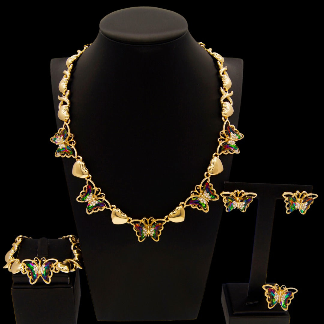 HUGS &KISSES butterfly colors stones set gold Plated #60